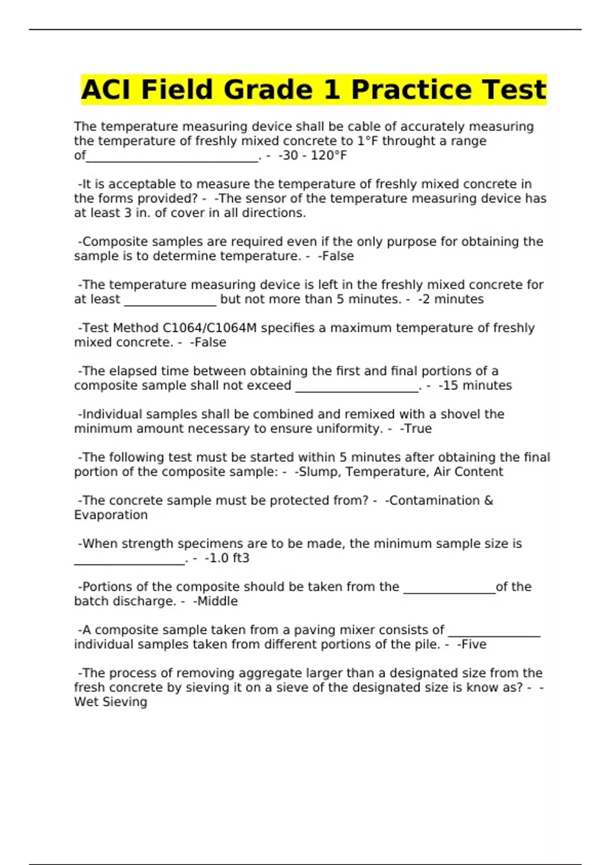 ACI Field Grade 1 Practice Test