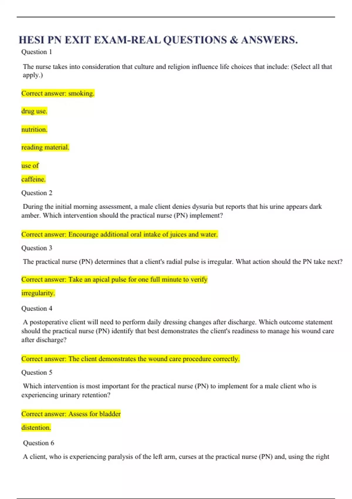 HESI PN EXIT EXAM-REAL QUESTIONS & ANSWERS