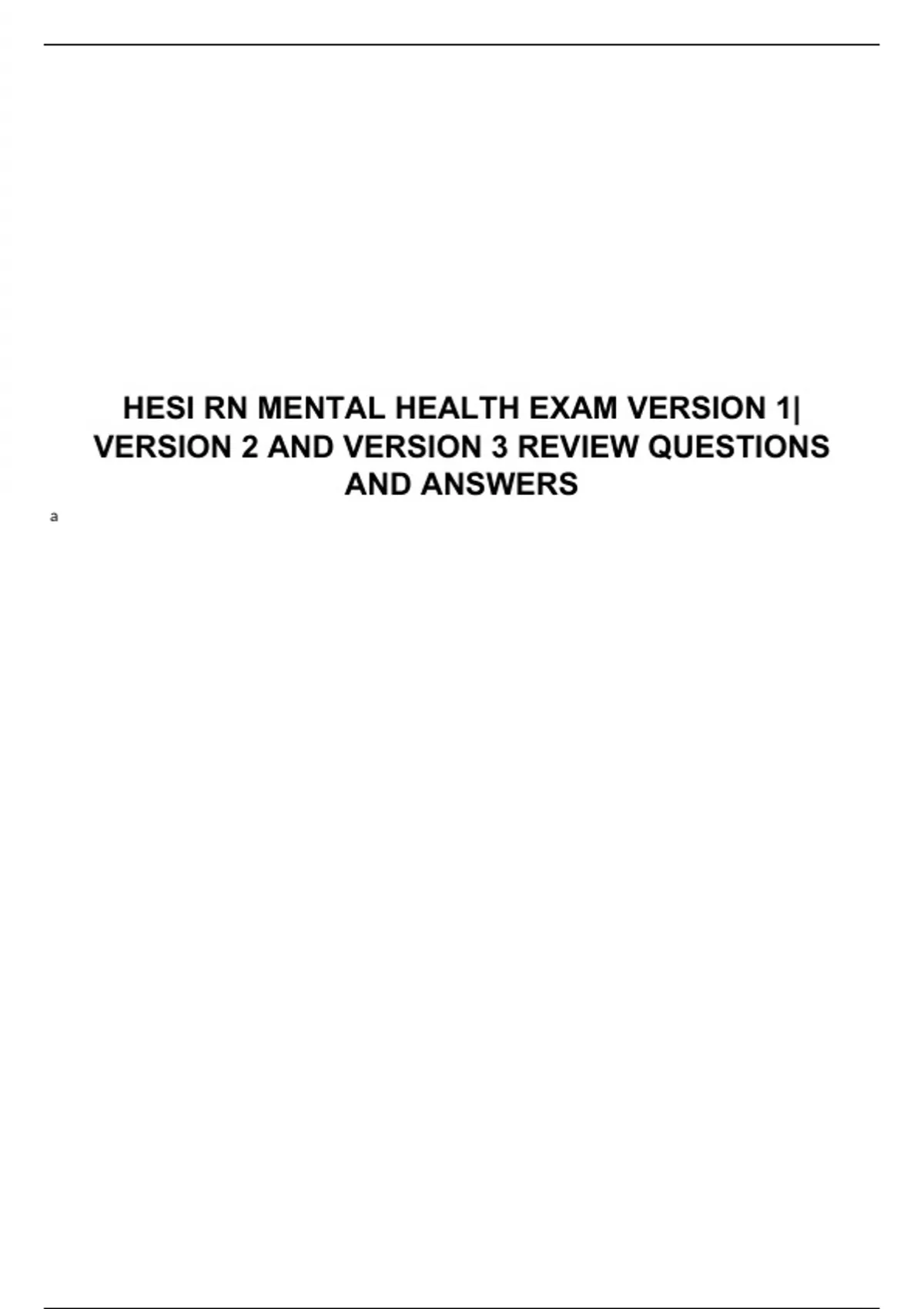 HESI RN MENTAL HEALTH EXAM VERSION 1| VERSION 2 AND VERSION 3 REVIEW QUESTIONS AND ANSWERS