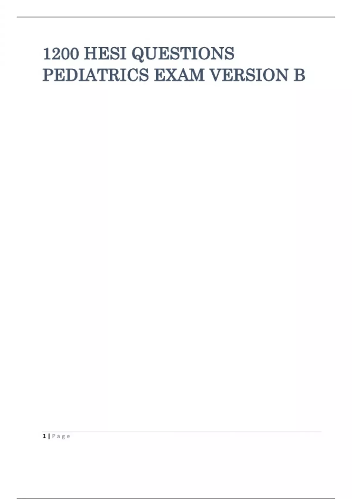 1200 HESI QUESTIONS PEDIATRICS EXAM VERSION B
