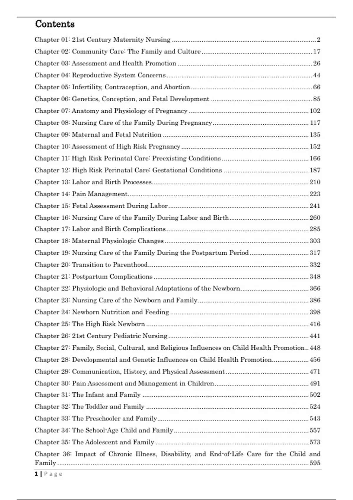 Test Bank Maternal Child Nursing Care 2nd Edition Ward HisleyContents Chapter 01: 21st Century Maternity Nursing .............................................................................. 2 Chapter 02: Community Care: The Family and Culture ............................................................ 17 Chapter 03: Assessment and Health Promotion ......................................................................... 26 Chapter 04: Reproductive System Concerns ............................................................................... 44 Chapter 05: Infertility, Contraception, and Abortion .................................................................. 66 Chapter 06: Genetics, Conception, and Fetal Development ....................................................... 85 Chapter 07: Anatomy and Physiology of Pregnancy ................................................................. 102 Chapter 08: Nursing Care of the Family During Pregnancy .................................................... 117 Chapter 09: Maternal and Fetal Nutrition ............................................................................... 135 Chapter 10: Assessment of High Risk Pregnancy ..................................................................... 152 Chapter 11: High Risk Perinatal Care: Preexisting Conditions ............................................... 166 Chapter 12: High Risk Perinatal Care: Gestational Conditions .............................................. 187 Chapter 13: Labor and Birth Processes..................................................................................... 210 Chapter 14: Pain Management .................................................................................................. 223 Chapter 15: Fetal Assessment During Labor ............................................................................ 241 Chapter 16: Nursing Care of the Family During Labor and Birth ........................................... 260 Chapter 17: Labor and Birth Complications ............................................................................. 285 Chapter 18: Maternal Physiologic Changes .............................................................................. 303 Chapter 19: Nursing Care of the Family During the Postpartum Period ................................ 317 Chapter 20: Transition to Parenthood ....................................................................................... 332 Chapter 21: Postpartum Complications .................................................................................... 348 Chapter 22: Physiologic and Behavioral Adaptations of the Newborn ..................................... 366 Chapter 23: Nursing Care of the Newborn and Family ............................................................ 386 Chapter 24: Newborn Nutrition and Feeding ........................................................................... 398 Chapter 25: The High Risk Newborn ........................................................................................ 416 Chapter 26: 21st Century Pediatric Nursing ............................................................................ 441 Chapter 27: Family, Social, Cultural, and Religious Influences on Child Health Promotion .. 448 Chapter 28: Developmental and Genetic Influences on Child Health Promotion .................... 456 Chapter 29: Communication, History, and Physical Assessment ............................................. 471 Chapter 30: Pain Assessment and Management in Children ................................................... 491 Chapter 31: The Infant and Family .......................................................................................... 502 Chapter 32: The Toddler and Family ........................................................................................ 524 Chapter 33: The Preschooler and Family .................................................................................. 543 Chapter 34: The School-Age Child and Family ......................................................................... 557 Chapter 35: The Adolescent and Family ................................................................................... 573 Chapter 36: Impact of Chronic Illness, Disability, and End-of-Life Care for the Child and Family ........................................................................................................................................ 595 1 | P a g eChapter 37: Impact of Cognitive or Sensory Impairment on the Child and Family ................ 612 Chapter 38: Family-Centered Care of the Child During Illness and Hospitalization ............. 632 Chapter 39: Pediatric Variations of Nursing Interventions ...................................................... 644 Chapter 40: Respiratory Dysfunction ........................................................................................ 667 Chapter 41: Gastrointestinal Dysfunction ................................................................................ 685 Chapter 42: Cardiovascular Dysfunction .................................................................................. 707 Chapter 43: Hematologic and Immunologic Dysfunction ......................................................... 732 Chapter 44: Cancer .................................................................................................................... 756 Chapter 45: Genitourinary Dysfunction .................................................................................... 780 Chapter 46: Cerebral Dysfunction ............................................................................................. 796 Chapter 47: Endocrine Dysfunction .......................................................................................... 817 Chapter 48: Musculoskeletal or Articular Dysfunction ............................................................ 833 Chapter 49: Neuromuscular or Muscular Dysfunction .........