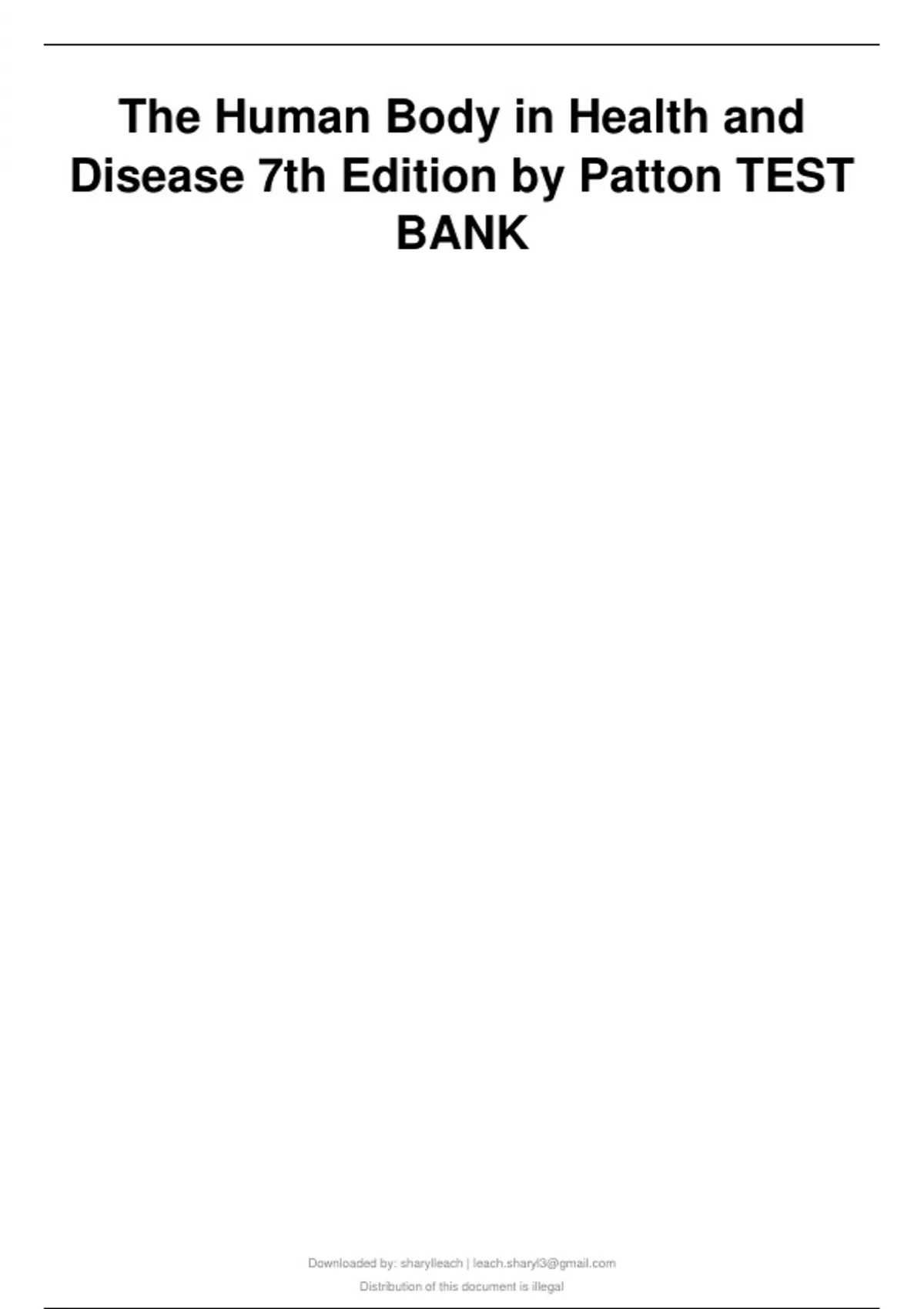 The Human Body in Health and Disease 7th Edition by Patton TEST BANK