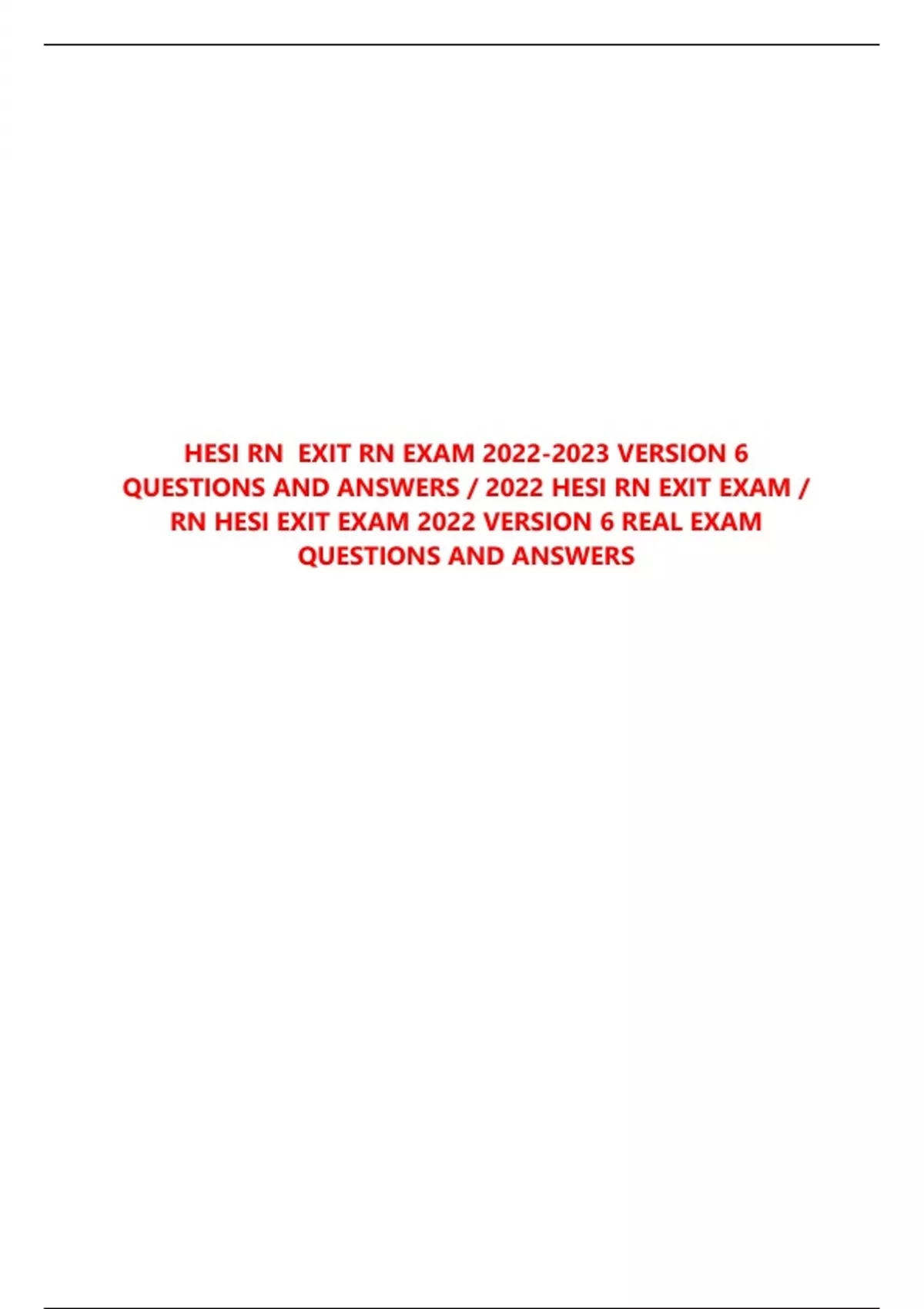 HESI RN EXIT RN EXAM 2022-2023 VERSION 6