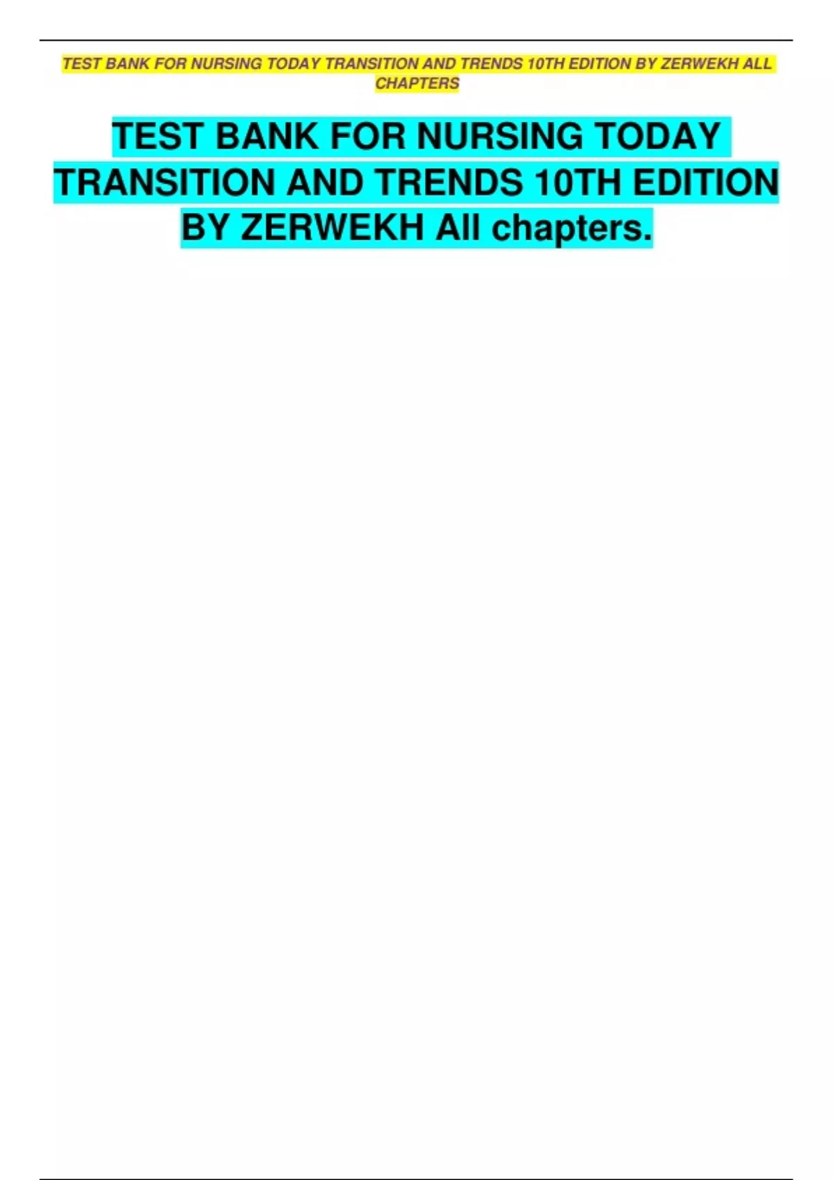 TEST BANK FOR NURSING TODAY TRANSITION AND TRENDS 10TH EDITION BY ZERWEKH ALL CHAPTERS