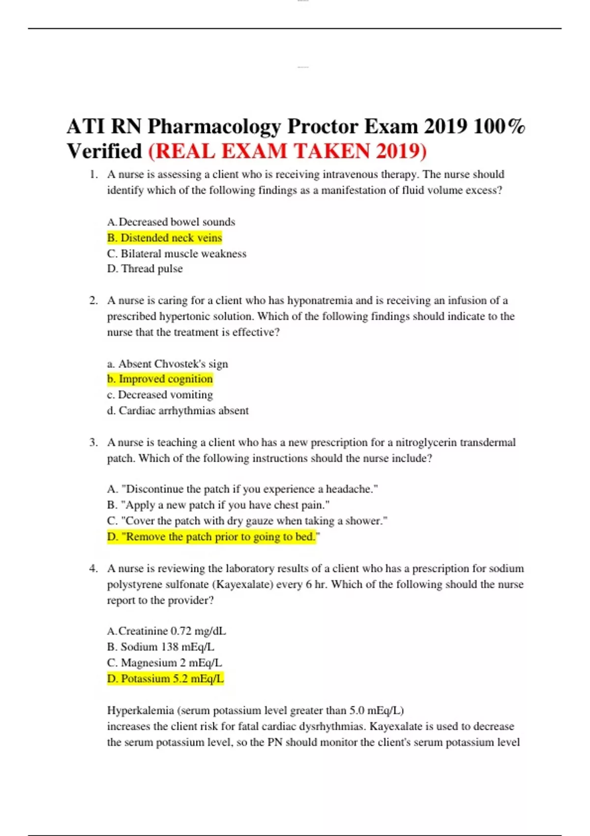 ATI RN Pharmacology Proctor Exam 2019 100% Verified (REAL EXAM TAKEN 2019)