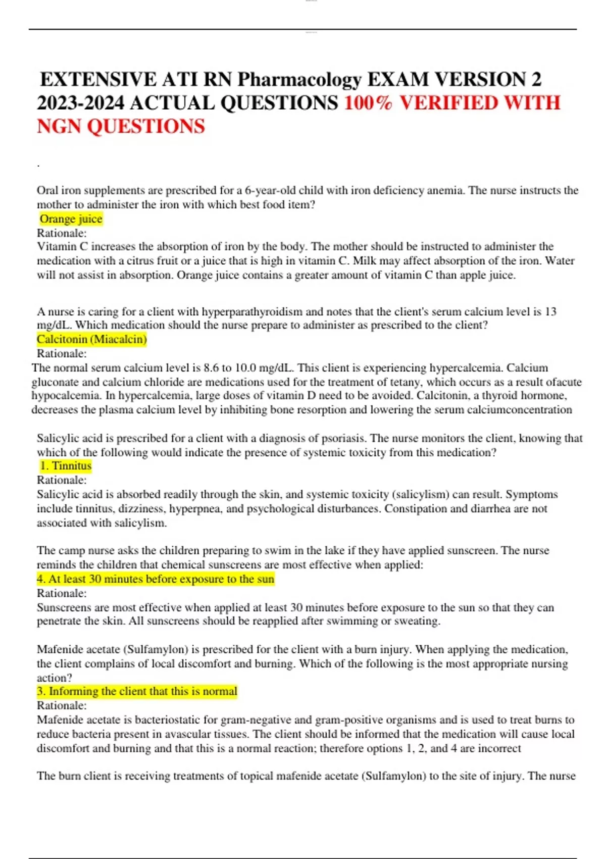 EXTENSIVE ATI RN Pharmacology EXAM VERSION ACTUAL QUESTIONS 100% VERIFIED WITH NGN QUESTIONS