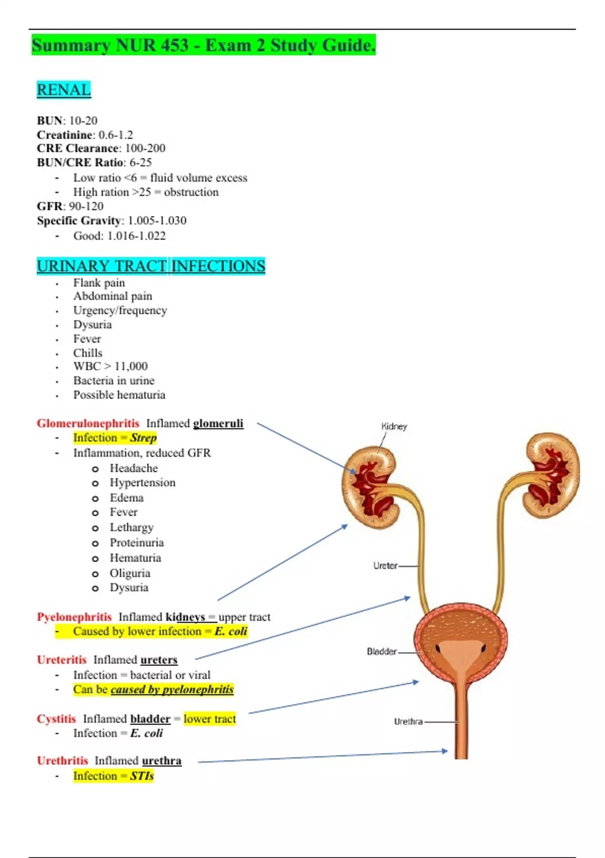Summary NUR 453 - Exam 2 Study Guide.
