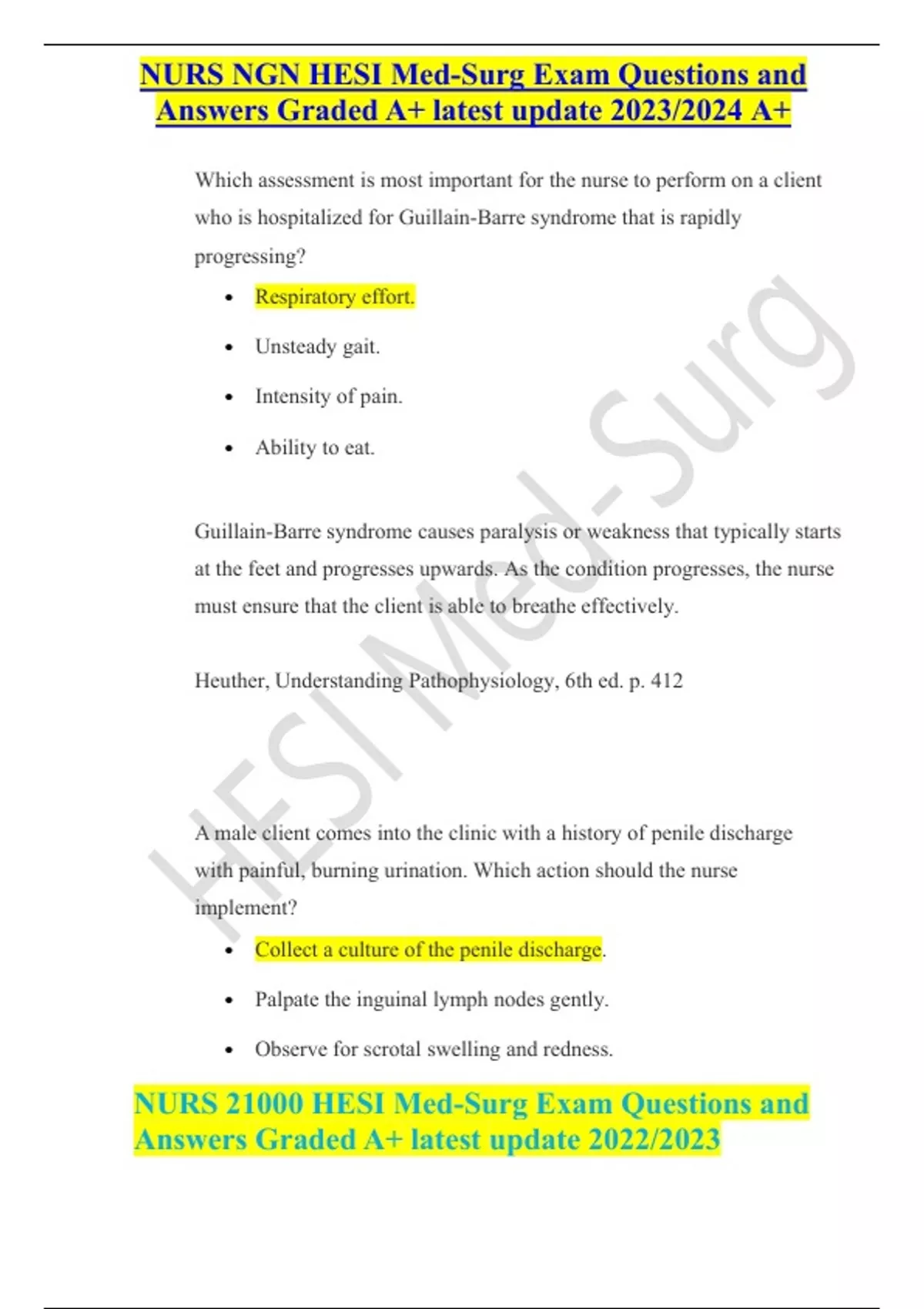 NURS21000HESIMed-SurgExamQuestionsand