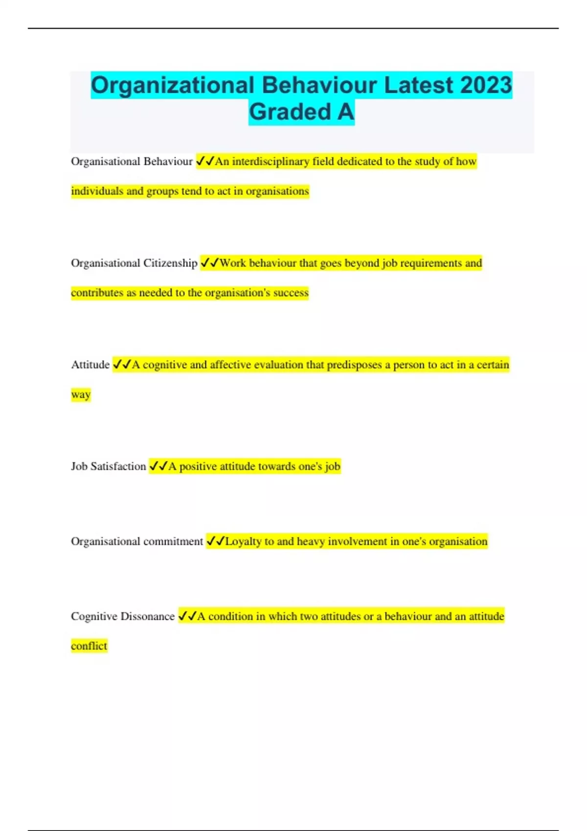 Organizational Behaviour Latest 2023 Graded A