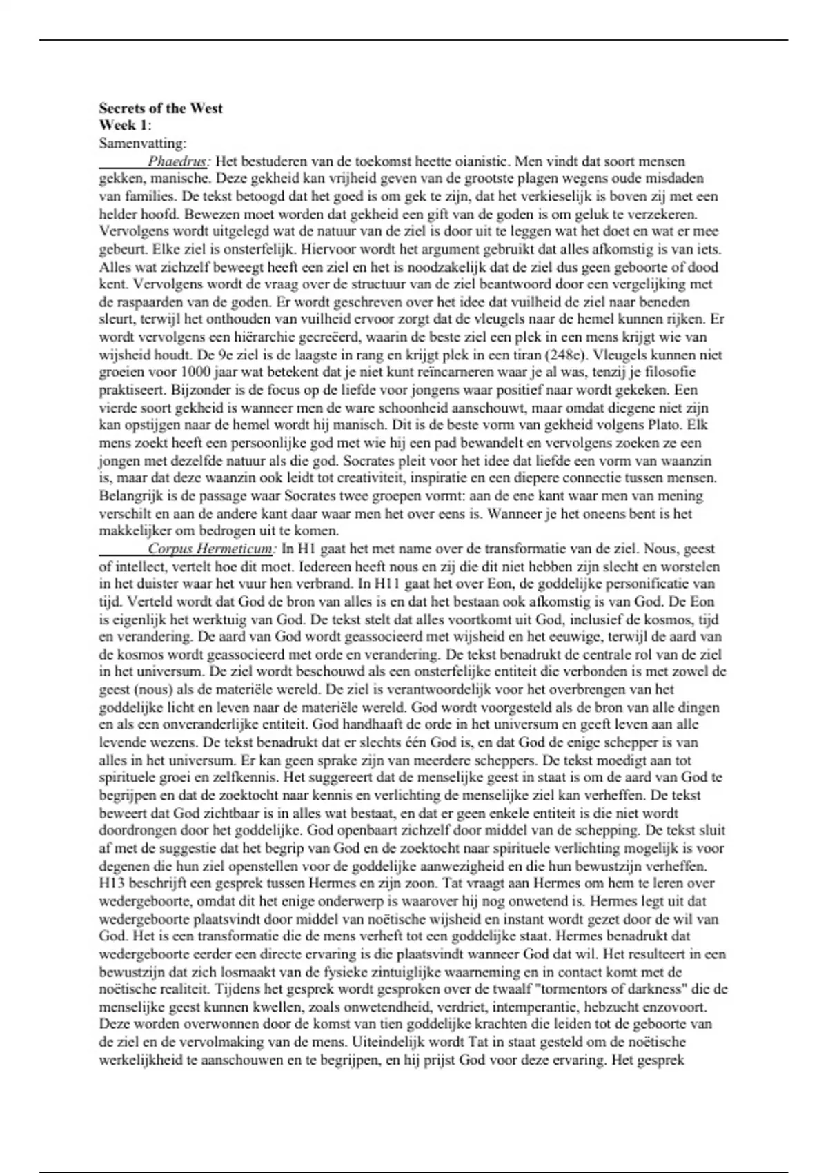 Corpus Hermeticum: In H1 gaat het met name over de transformatie van de ziel. Nous, geest