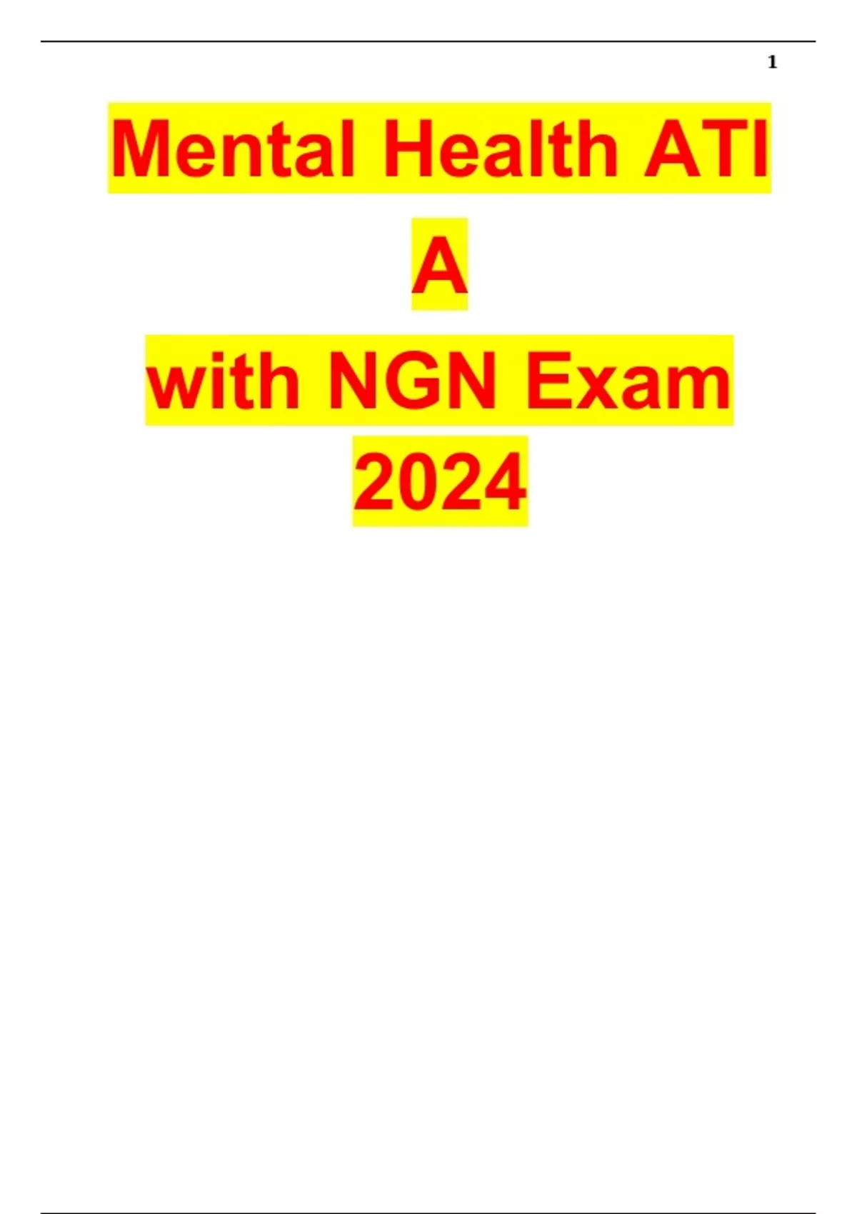 A nurse is planning care for a client who is experiencing acute mania. Which of the following interventions should the nurse include in the plan to promote sleep? - ANSWER Encourage frequent rest periods throughout the day A nurse is delegating client care tasks to a LPN and an assistive personnel. Which of the following tasks should the nurse assign to the LPN? - ANSWER Change the dressings of a client who has borderline personality disorder and superficial self-inflected wounds A nurse is preparing to administer chlorpromazine 0.55 mg/kg PO to an adolescent who weighs 110 lb. Available is chlorpromazine syrup 10mg/5mL. How many mL should the nurse administer? - ANSWER 14 mL A nurse is admitting a client who has alcohol use disorder. Which of the following statements by the client indicated that the client is using denial as a defense mechanism? - ANSWER "I am able to go to work everyday, so I don't have a problem." A community health nurse is planning an education program about depressive disorders. Which of the following factors should the nurse include as increasing the risk for depression? - ANSWER Substance abuse disorder A nurse is admitting a client who has schizophrenia to an acute care setting. When the nurse questions the client regarding their admission, the client states, "I'm red, in the head, and I'm going to bed!" The nurse questions the client's speech pattern as which of the following? - ANSWER Clang association A nurse in an outpatient mental health setting is collecting a health history from a client who is taking paroxetine for depression. The client reports to the nurse that he also takes herbal supplements. The nurse should advise the client that which of the following supplements interacts adversely with paroxetine? - ANSWER St. Johns Wort A charge nurse is preparing an educational session for a group of newly licensed nurses to review client rights under the law. Which of the following statements should the nurse make? - ANSWER "In the event a client threatens to harm others, medication can be administered without consent." A nurse is assessing a client who has schizophrenia. Which of the following findings should the nurse document as a negative symptom of this disorder? - ANSWER Anhedonia A nurse is admitting a client who has anorexia nervosa and is at 60% of ideal body weight. Which of the following interventions should the nurse include in the plan of care? - ANSWER Encourage the client to drink 125 mL of fluid each hour while awake. A nurse is caring for a group of clients. Which of the following findings should the nurse report? - ANSWER A client who is taking lamotrigine and has developed a rash. A nurse in a mental health clinic is planning care for a client who has a new prescription for olanzapine. Which of the following interventions should the nurse identify as the priority? - ANSWER Instruct the client to avoid driving during initial therapy A nurse is planning care for an adolescent who is being admitted to an acute care unit following a suicide attempt. Which of the following interventions should the nurse identify as the priority? - ANSWER Arrange one-to-one observation of the client. A home health nurse is assessing an older adult client whose sibling is the primary caregiver. Which of the following findings should the nurse identify as a possible indicator of neglect? - ANSWER Inappropriate dress A nurse is caring for a group of clients. Which of the following findings is the nurse required to report? - ANSWER A client who has borderline personality disorder threatened to harm their roommate A nurse is caring for a group of clients. For which of the following situations should the nurse complete the incident report? - ANSWER A client was administered one-half of the prescribed dose of medication. A nurse is caring for a client who has a history of substance use disorder and was involuntarily admitted to a mental health facility. When the nurse attempts to administer oral lorazepam, the client refuses to take the medication and becomes physically aggressive. Which of the following actions should the nurse take? - ANSWER Do not administer the lorazepam