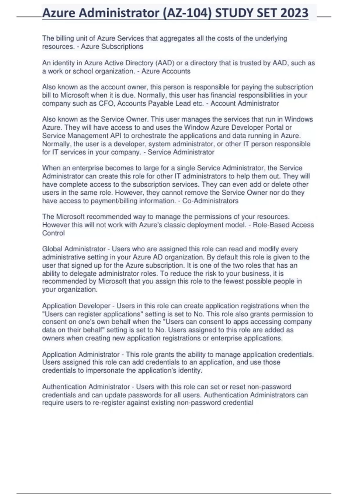 Azure Administrator (AZ-104) STUDY SET 2023.
