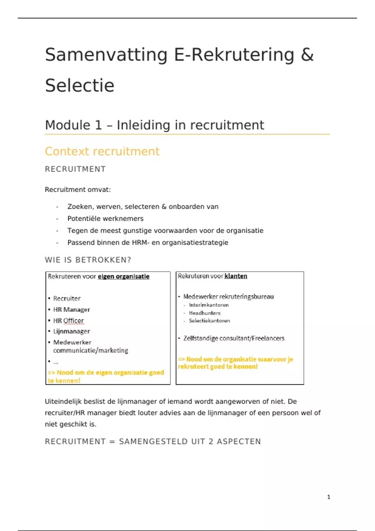 RECRUITMENT = SAMENGESTELD UIT 2 ASPECTEN