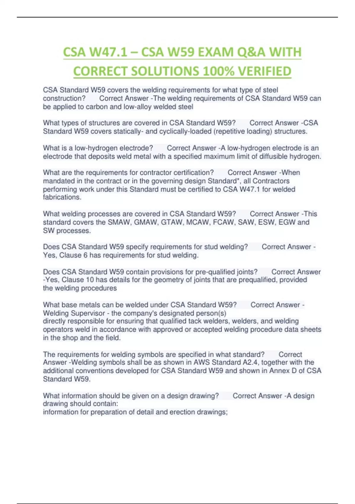 CSA W47.1 – CSA W59 EXAM Q&A WITH CORRECT SOLUTIONS 100% VERIFIEDCSA W47.1 – CSA W59 EXAM Q&A WITH CORRECT SOLUTIONS 100% VERIFIEDCSA W47.1 – CSA W59 EXAM Q&A WITH CORRECT SOLUTIONS 100% VERIFIEDCSA W47.1 – CSA W59 EXAM Q&A WITH CORRECT SOLUTIONS 100% VERIFIEDCSA W47.1 – CSA W59 EXAM Q&A WITH CORRECT SOLUTIONS 100% VERIFIEDCSA W47.1 – CSA W59 EXAM Q&A WITH CORRECT SOLUTIONS 100% VERIFIEDCSA W47.1 – CSA W59 EXAM Q&A WITH CORRECT SOLUTIONS 100% VERIFIEDCSA W47.1 – CSA W59 EXAM Q&A WITH CORRECT SOLUTIONS 100% VERIFIEDCSA W47.1 – CSA W59 EXAM Q&A WITH CORRECT SOLUTIONS 100% VERIFIEDCSA W47.1 – CSA W59 EXAM Q&A WITH CORRECT SOLUTIONS 100% VERIFIEDCSA W47.1 – CSA W59 EXAM Q&A WITH CORRECT SOLUTIONS 100% VERIFIEDCSA W47.1 – CSA W59 EXAM Q&A WITH CORRECT SOLUTIONS 100% VERIFIEDCSA W47.1 – CSA W59 EXAM Q&A WITH CORRECT SOLUTIONS 100% VERIFIEDCSA W47.1 – CSA W59 EXAM Q&A WITH CORRECT SOLUTIONS 100% VERIFIED