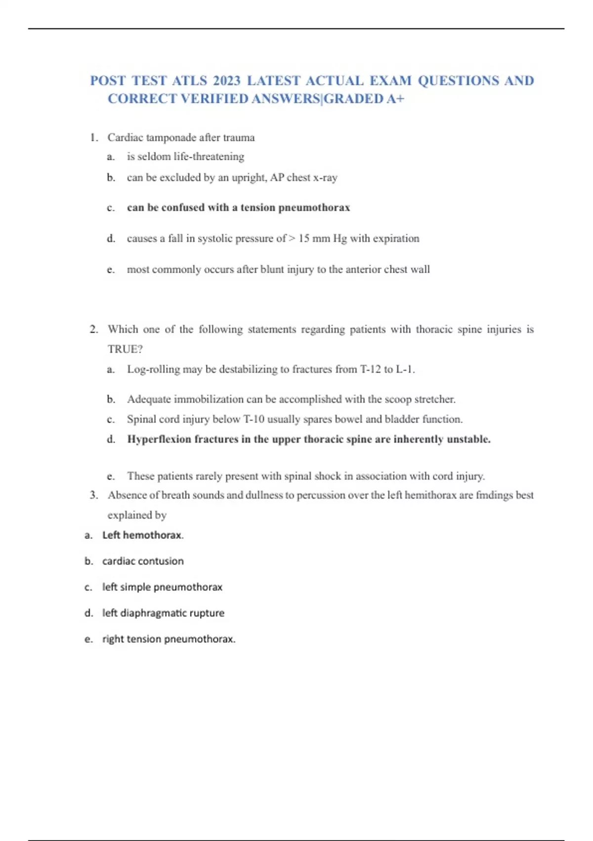 2. Which one of the following statements regarding patients with thoracic spine injuries is