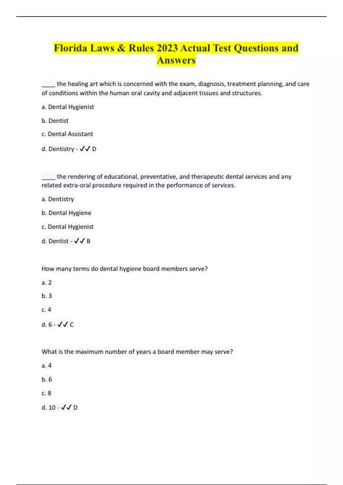 florida laws rules 2023 actual test questions an