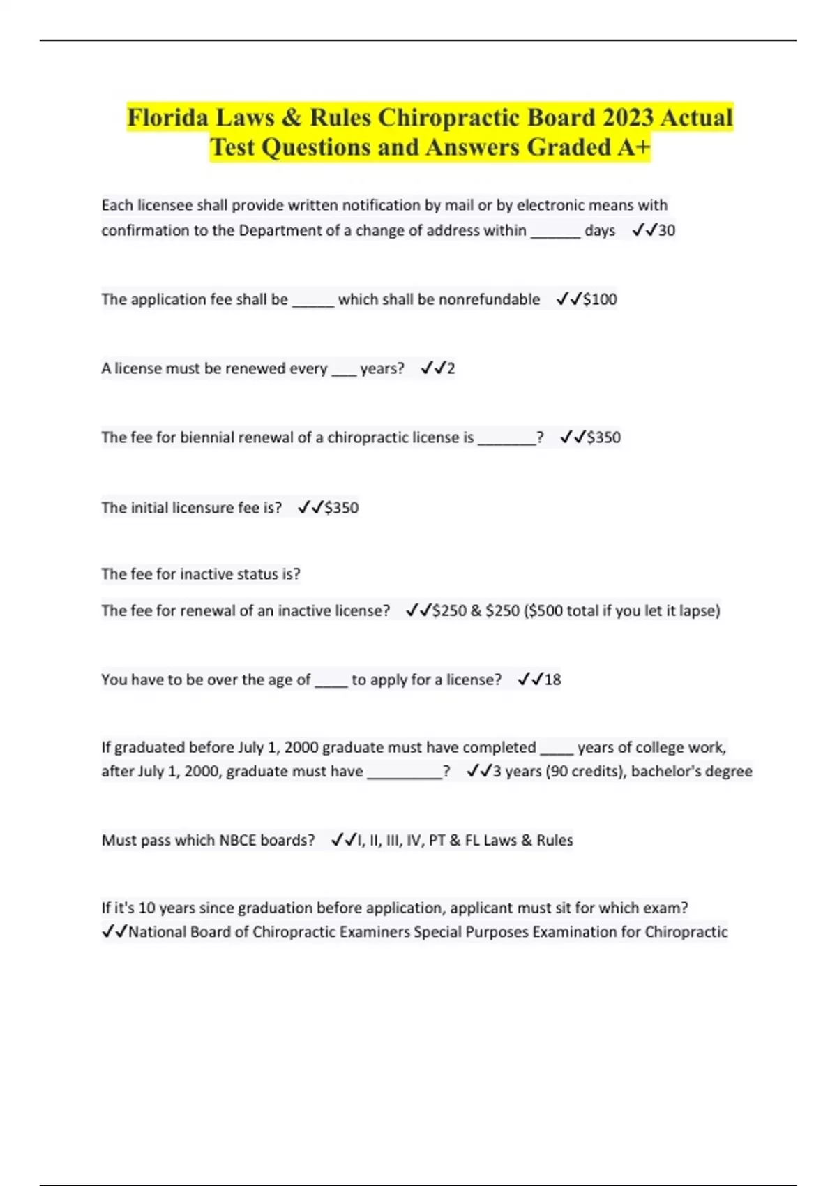 Florida Laws & Rules Chiropractic Board 2023 Actual Test Questions and Answers Graded A+