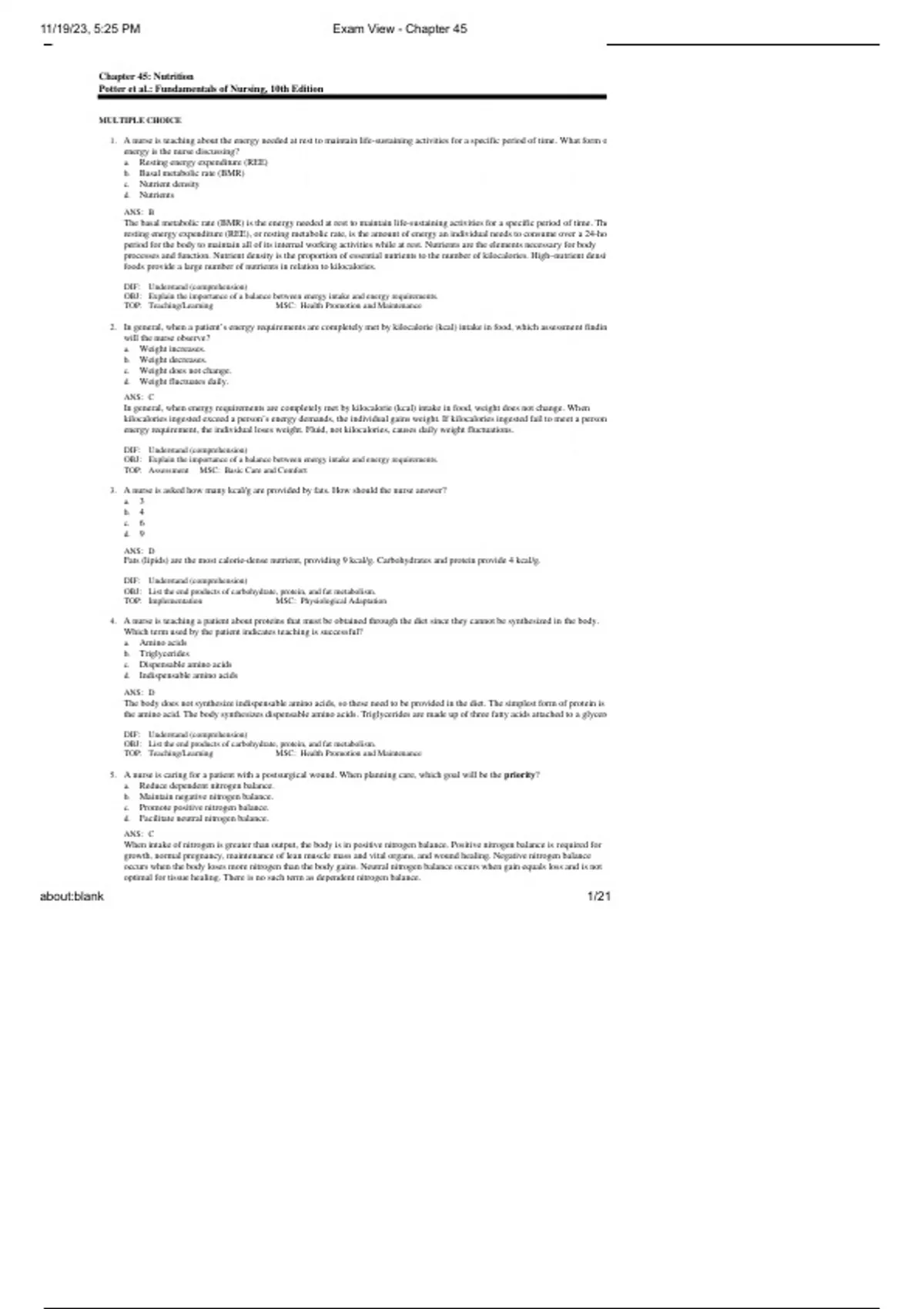 Fundamentals of Nursing, 10th Edition Exam View - Chapter 45