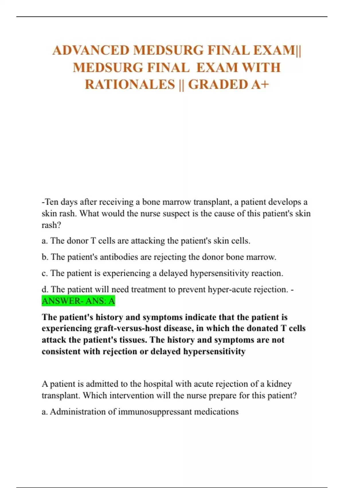 ADVANCED MEDSURG FINAL EXAM|| MEDSURG FINAL EXAM WITH RATIONALES || GRADED A+