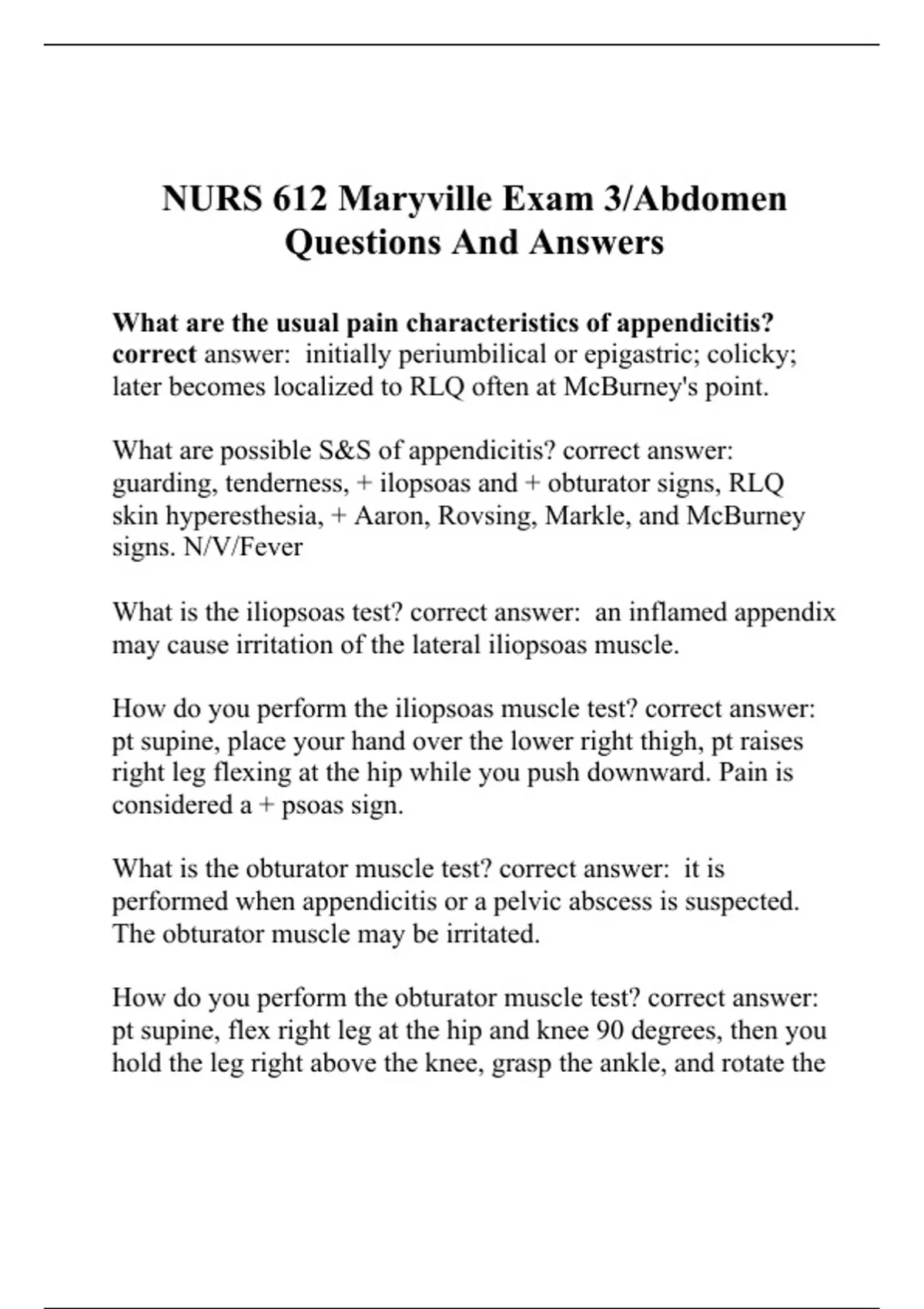 What is the iliopsoas test? correct answer: an inflamed appendix