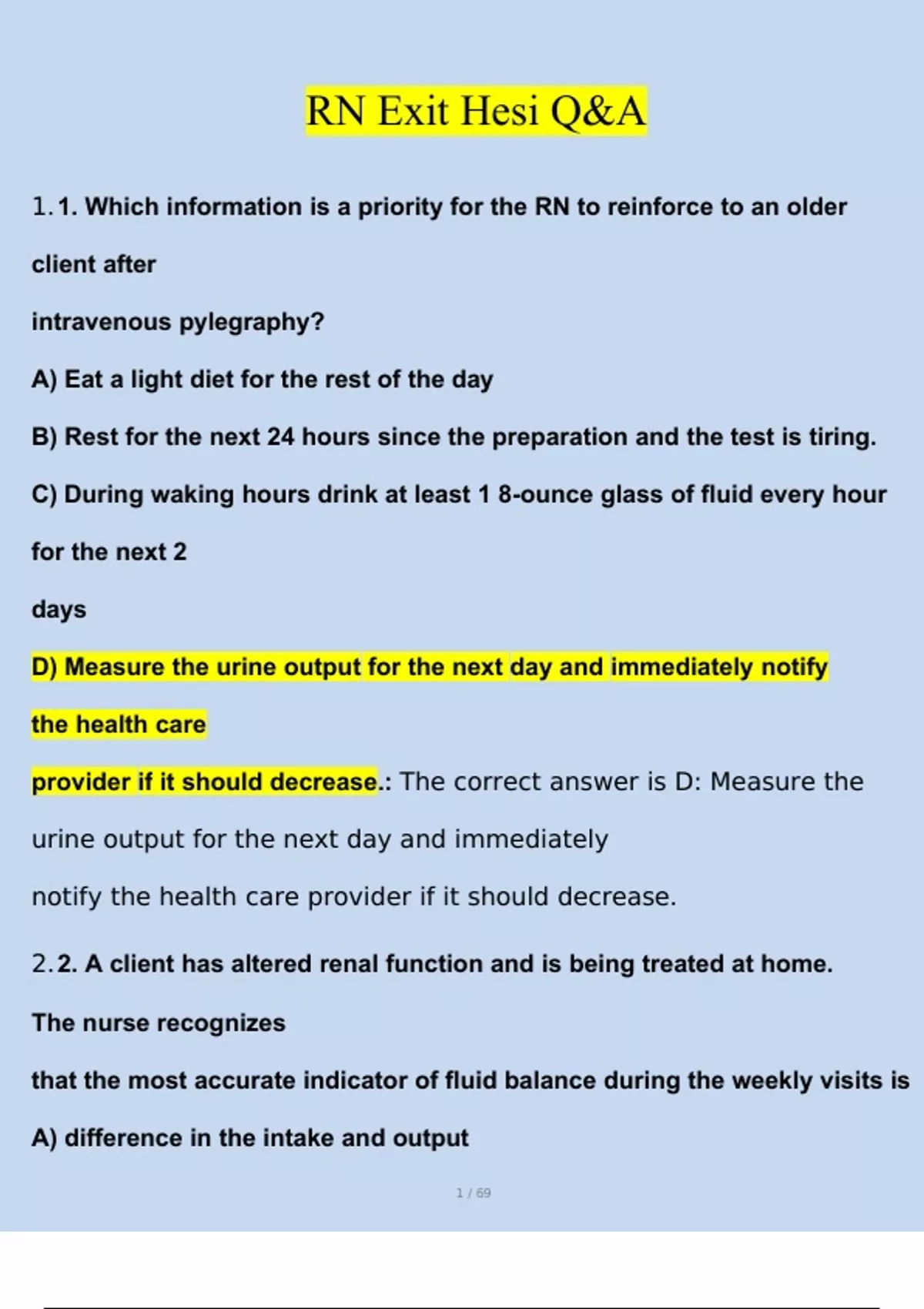 RN Exit Hesi Exam Newest Questions and Answers (2023 / 2024) (Verified Answers)