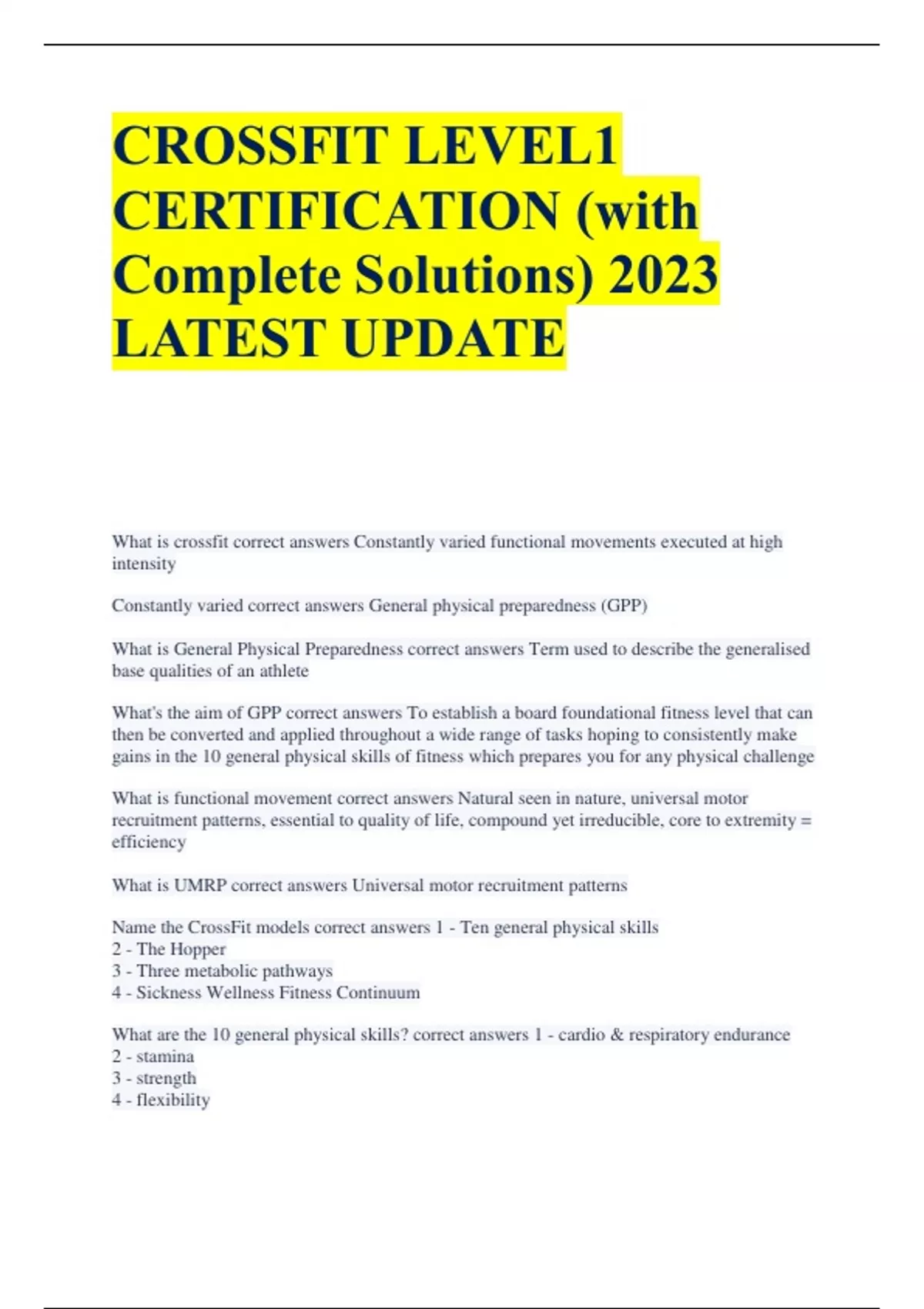 CROSSFIT LEVEL1 CERTIFICATION (with Complete Solutions) 2023 LATEST UPDATE