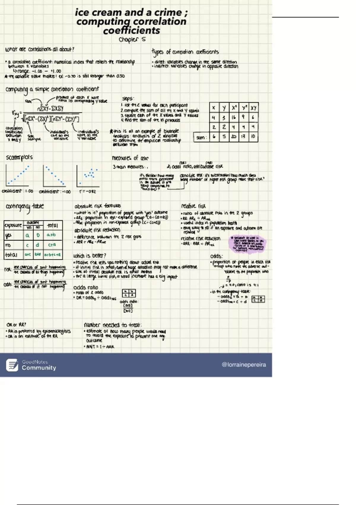 Includes definition of correlations, how to construct a correlation coefficient. Includes a bivariable analysis example with steps, and types of scatter plots. Also includes how to construct a contingency table, odds vs risk.