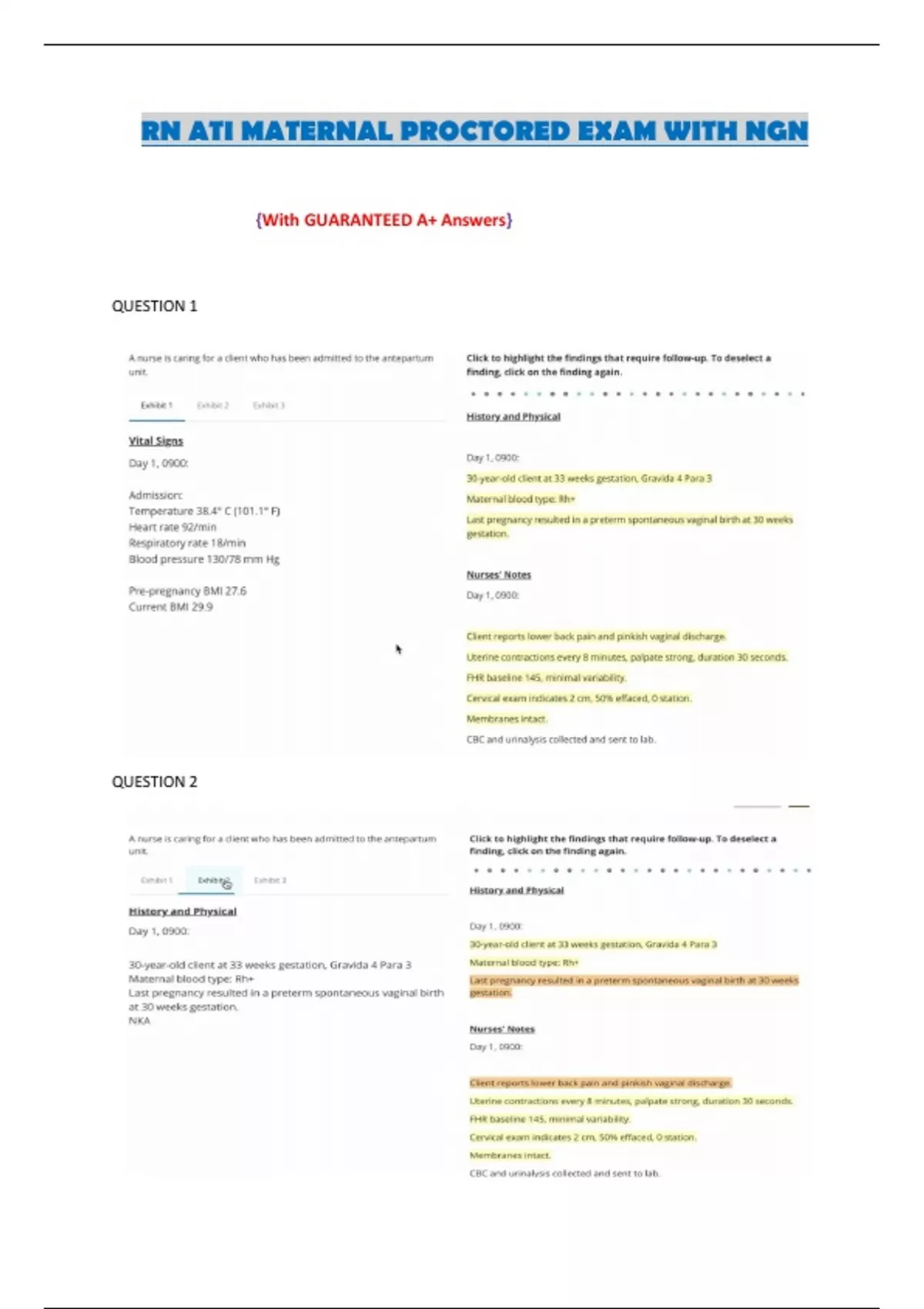 RN ATI MATERNAL PROCTORED EXAM WITH NGN