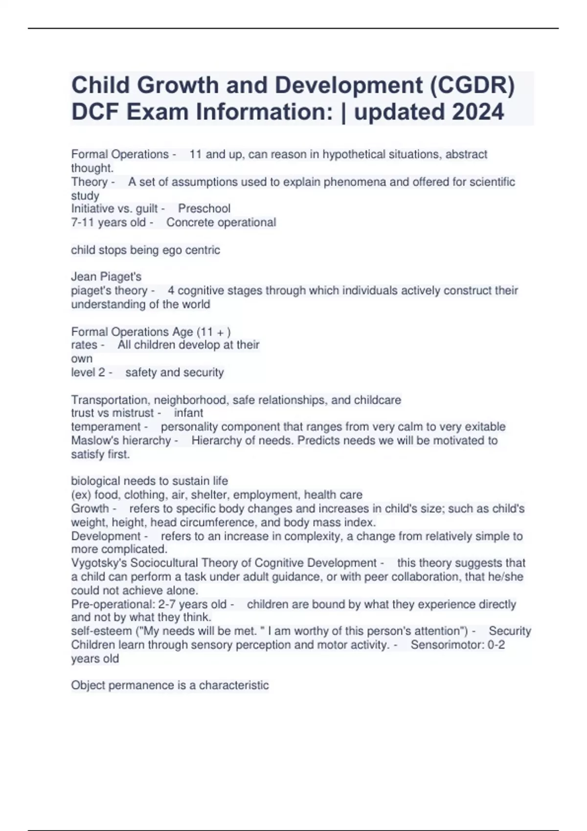 Child Growth and Development (CGDR) DCF Exam Information: | updated 2024