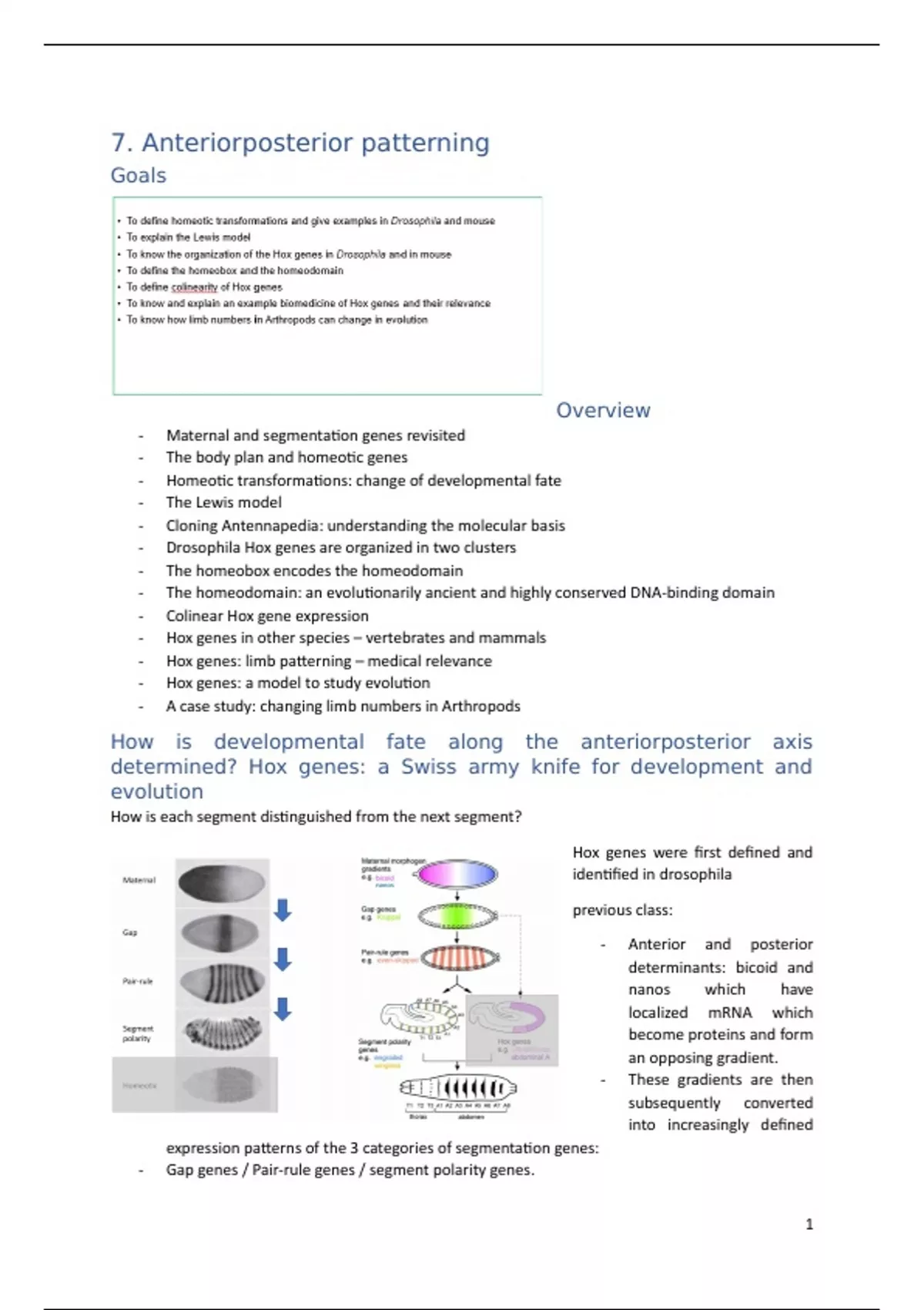 Volledige samenvatting H7: anterior-posterior-patterning: developmental biology