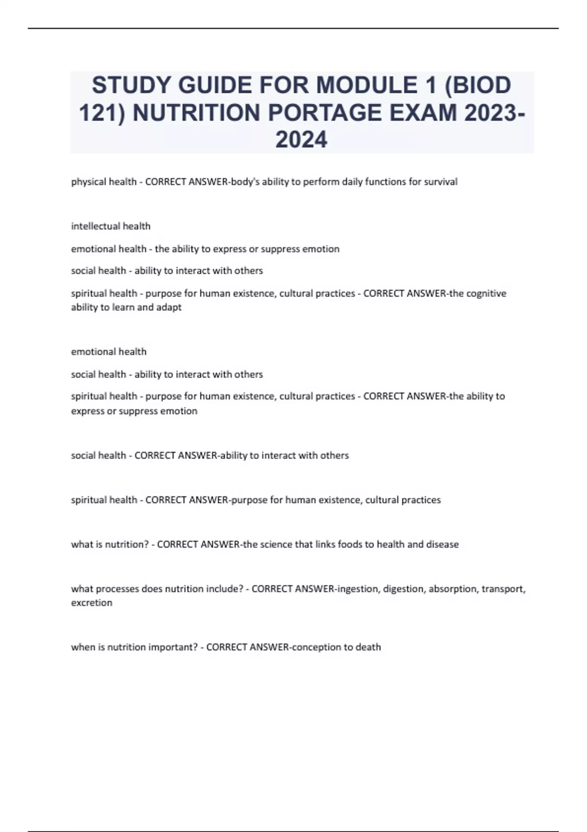 Study Guide for Module 1 (BIOD 121) Nutrition Portage Exam