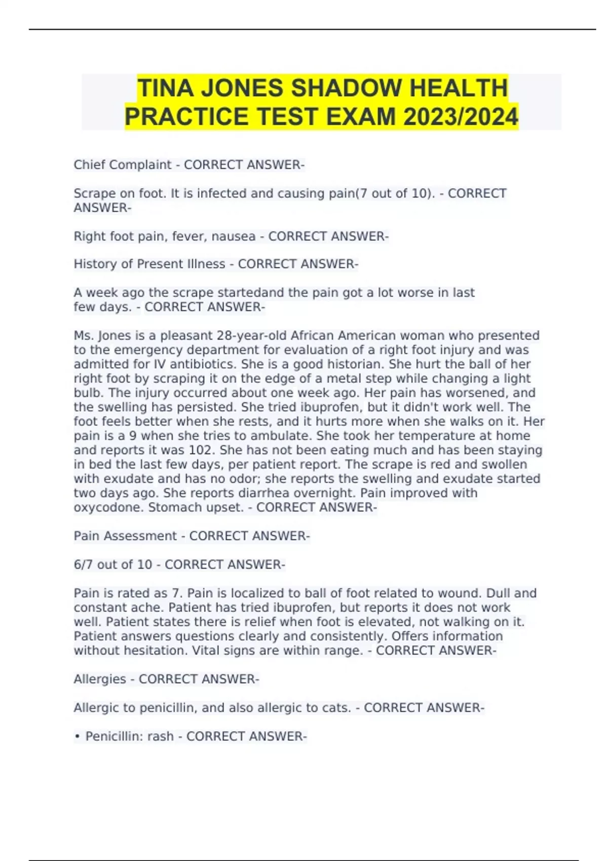 TINA JONES SHADOW HEALTH PRACTICE TEST EXAM 2023/2024
