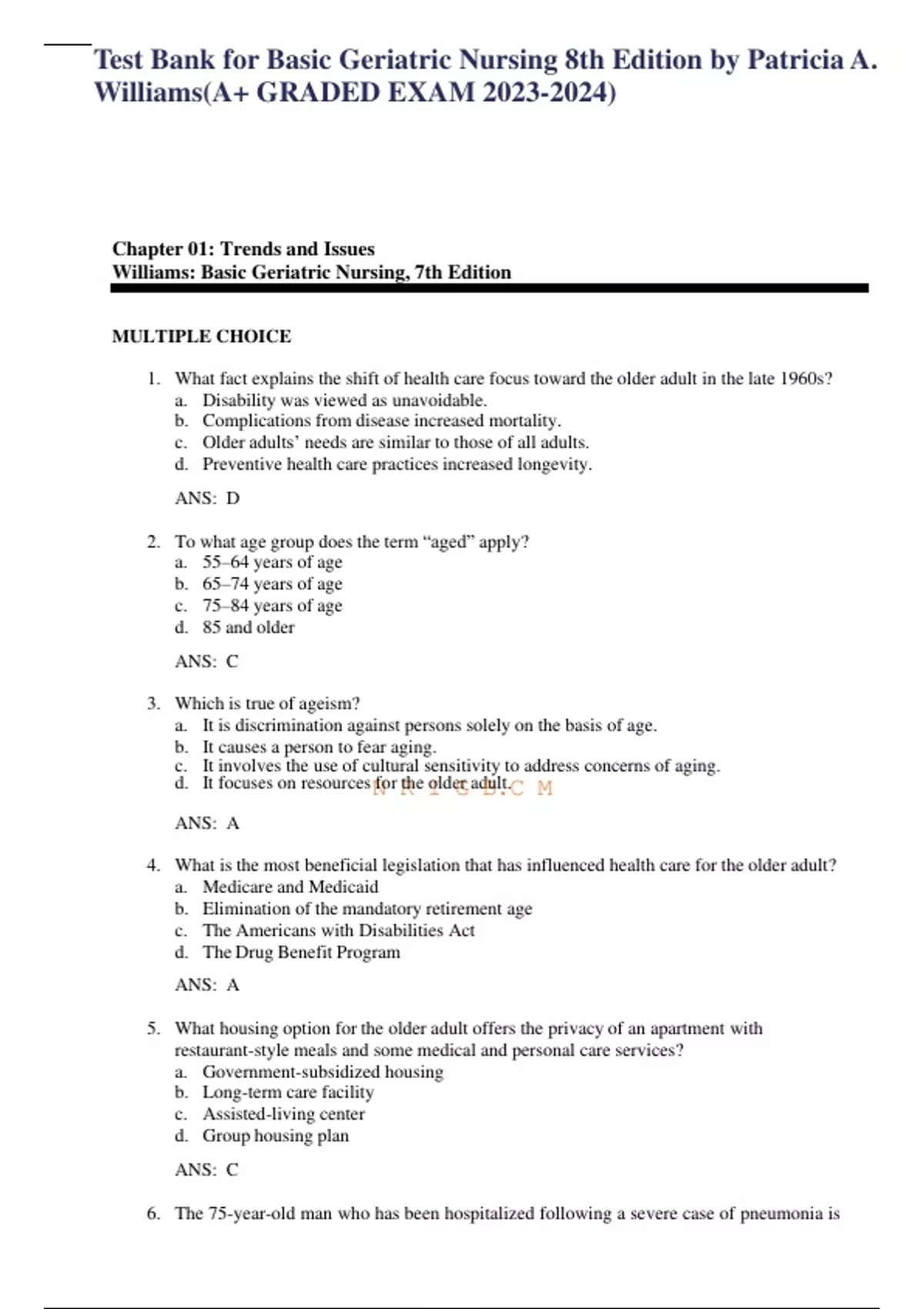 Test Bank for Basic Geriatric Nursing 8th Edition by Patricia A.Williams/Test Bank for Basic Geriatric Nursing 8th Edition by Patricia A.Williams/Test Bank for Basic Geriatric Nursing 8th Edition by Patricia A.Williams