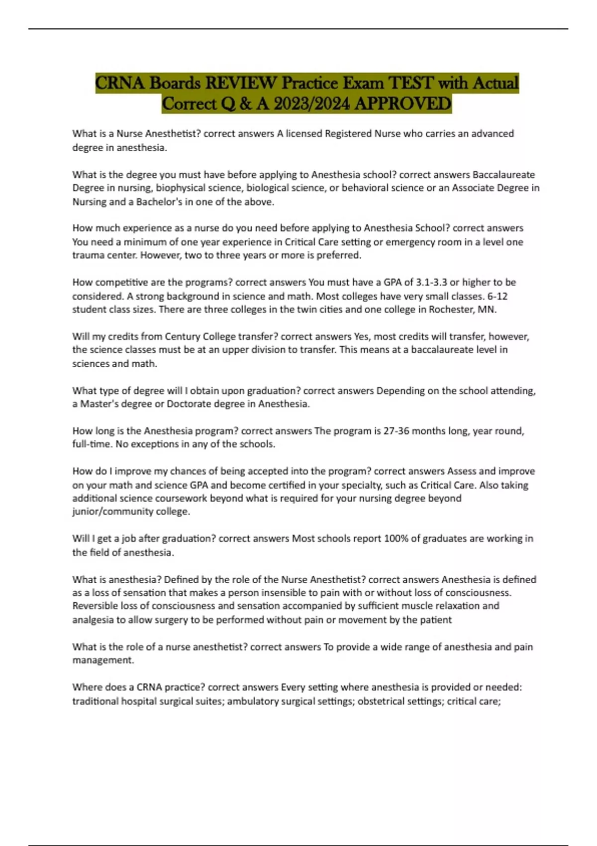 What is the degree you must have before applying to Anesthesia school? correct answers Baccalaureate