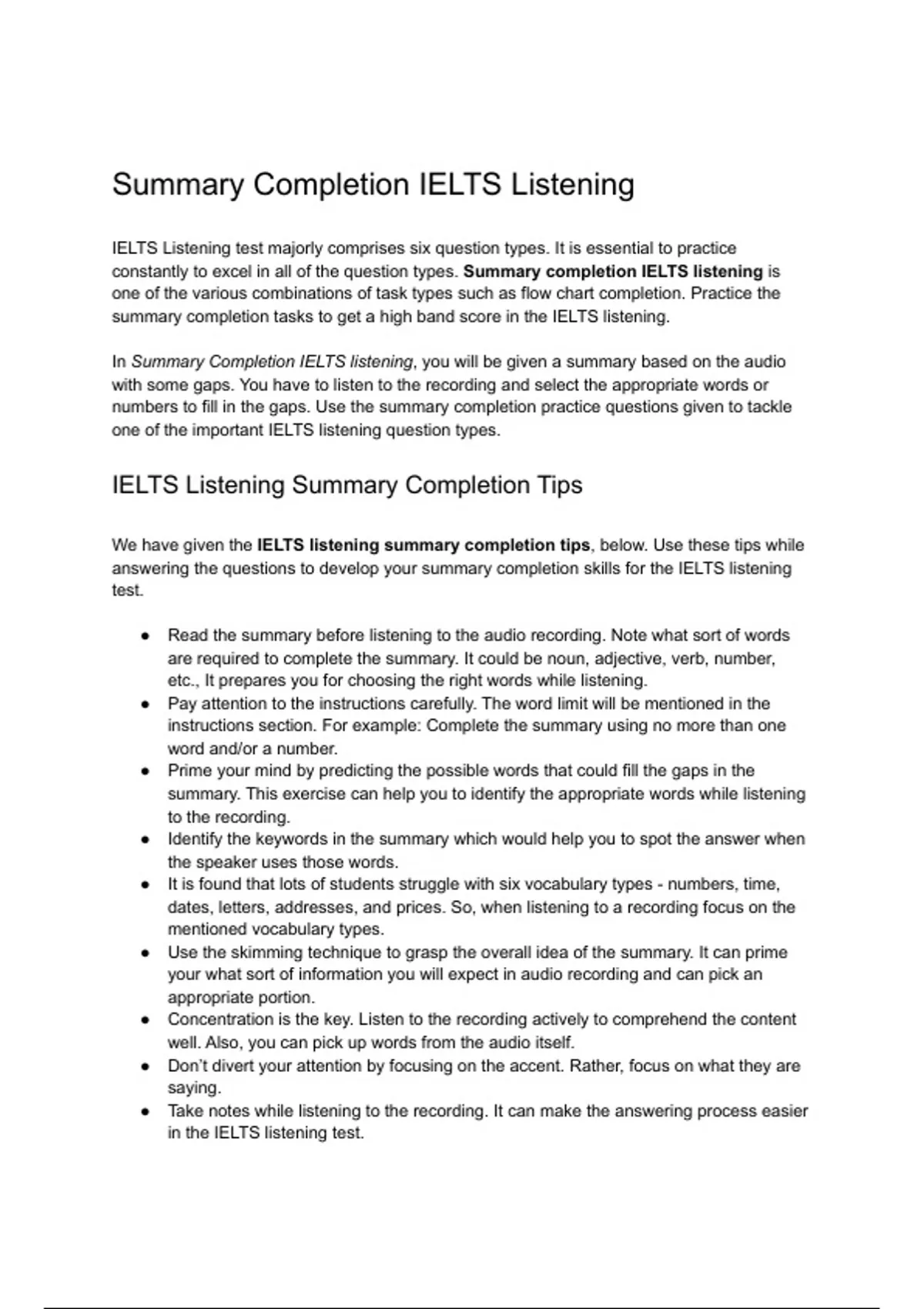 constantly to excel in all of the question types. Summary completion IELTS listening is