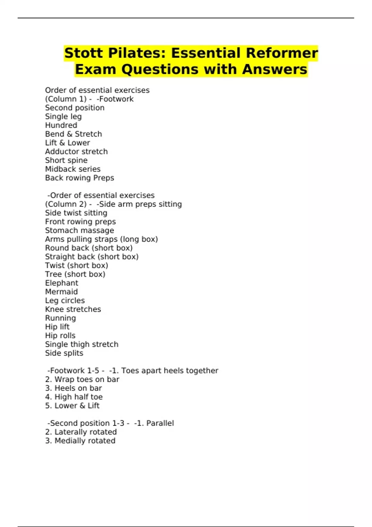 Stott Pilates: Essential Reformer Exam Questions with Answers