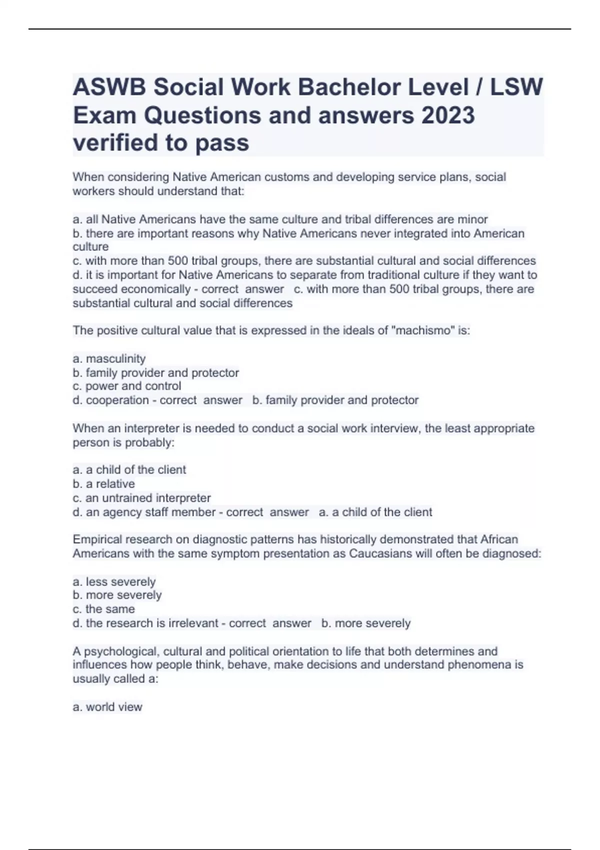 ASWB Social Work Bachelor Level questions with completed solutions 2023