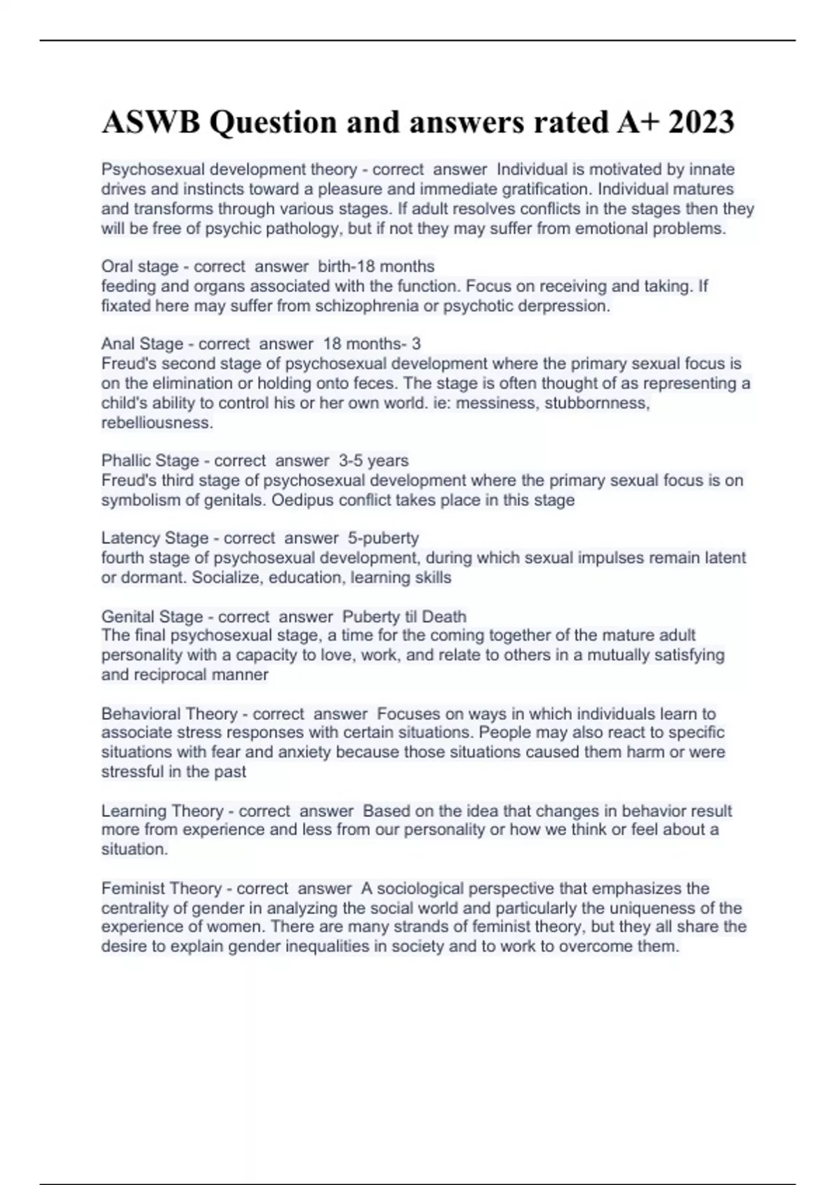 ASWB Question and answers rated A+ 2023