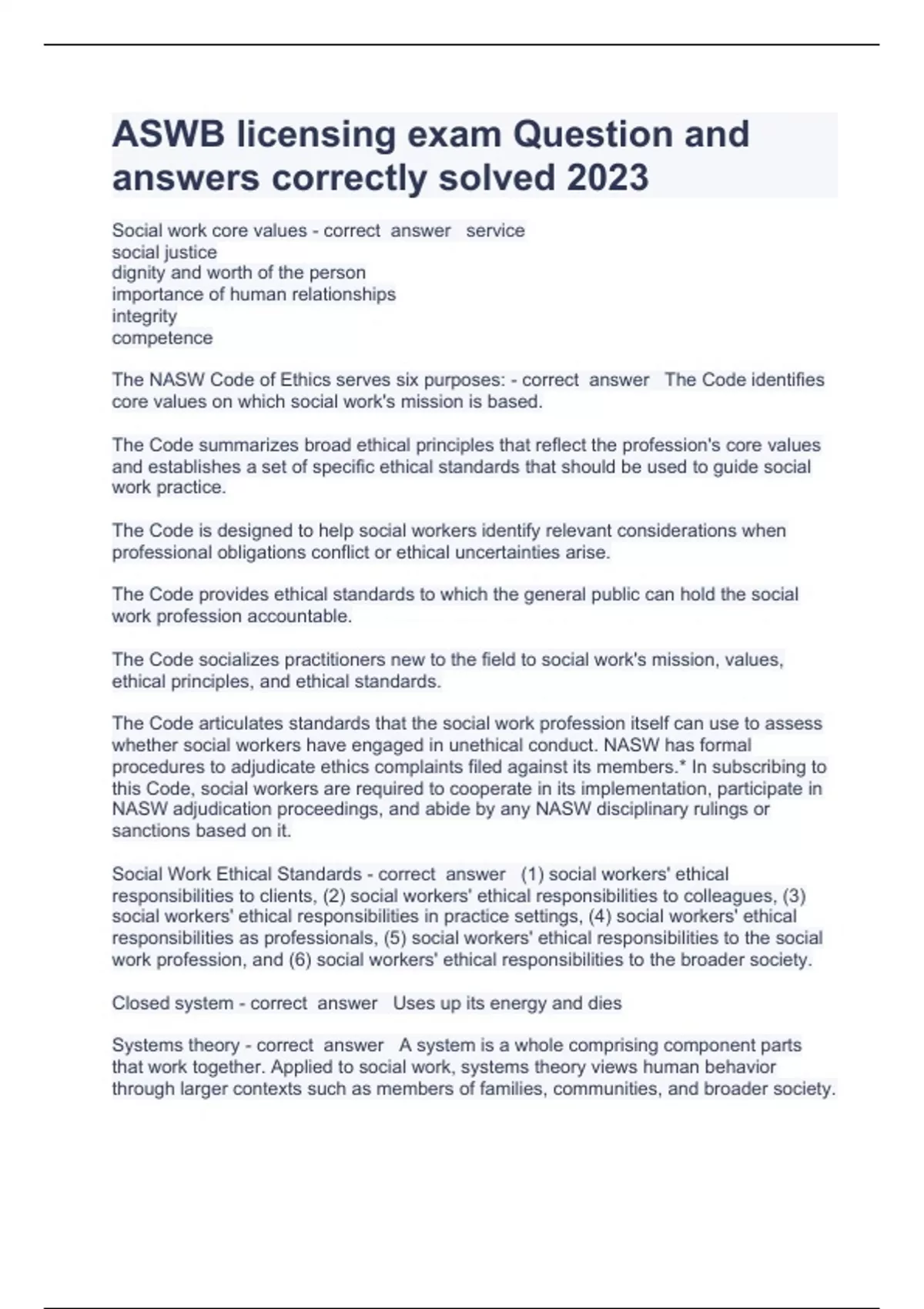 ASWB licensing exam Question and answers correctly solved 2023