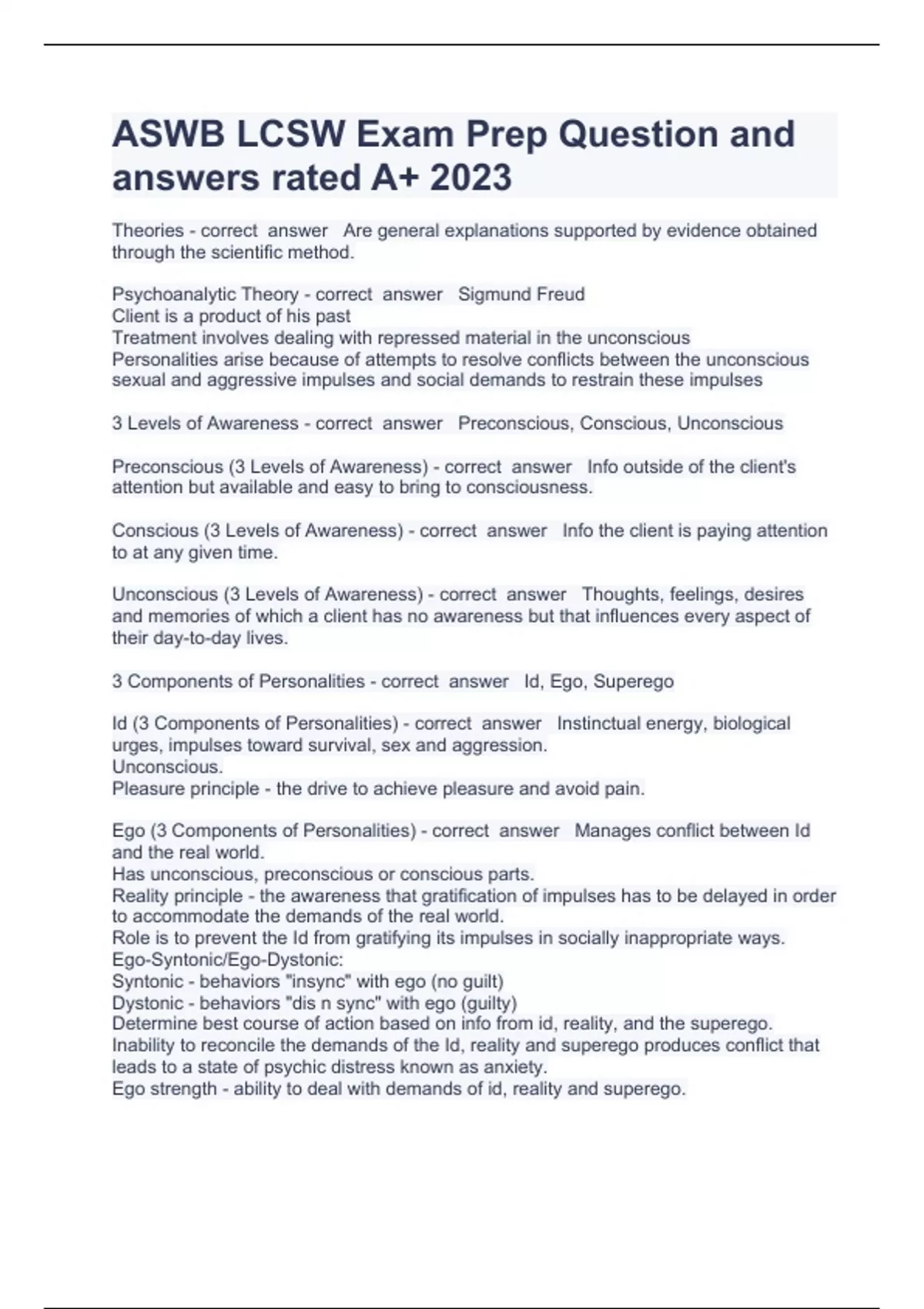 ASWB LCSW Exam Prep Question and answers rated A+2023