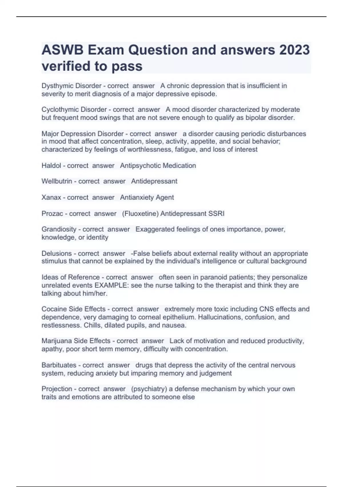 ASWB Exam Question and answers 2023 verified to pass