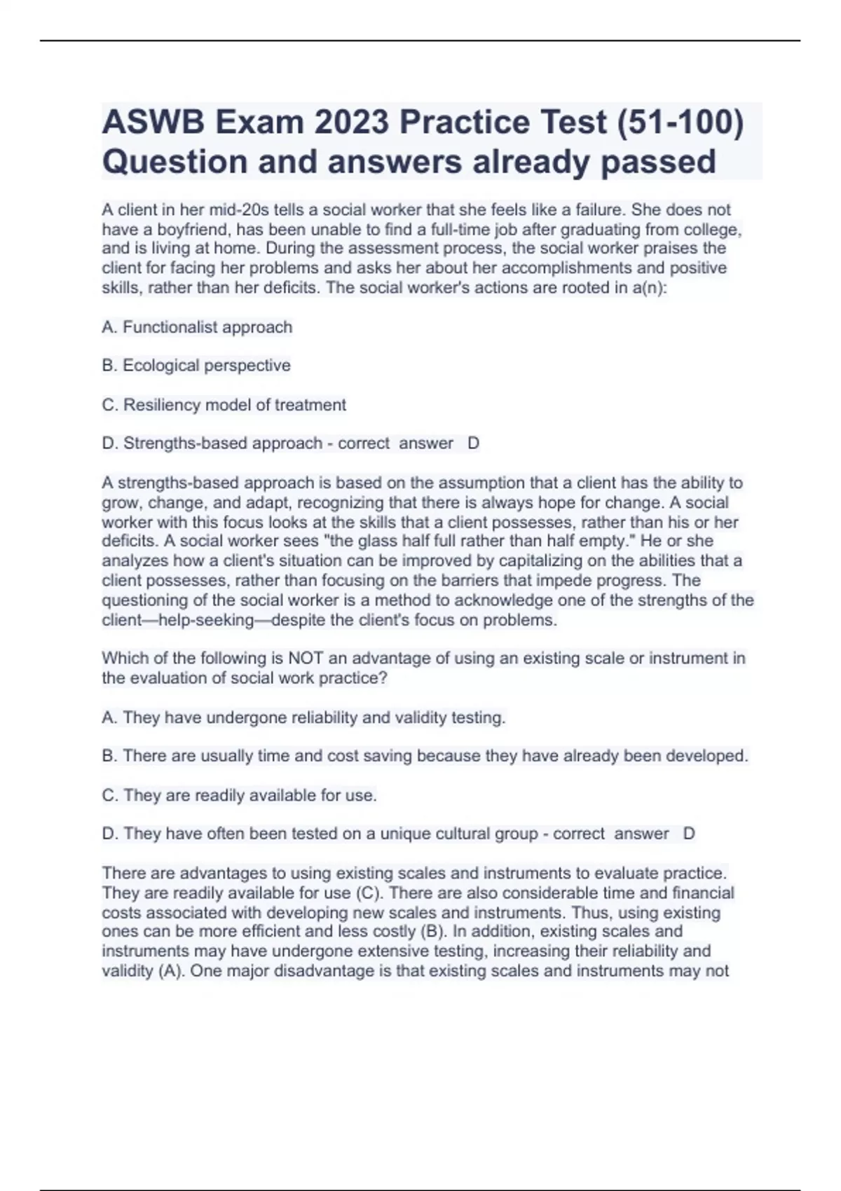 aswb exam 2023 practice tes1 questions with comple