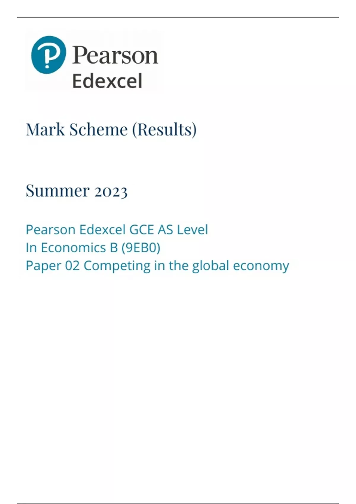 Edexcel A Level Economics (B) Paper 2 Mark Scheme June 2023