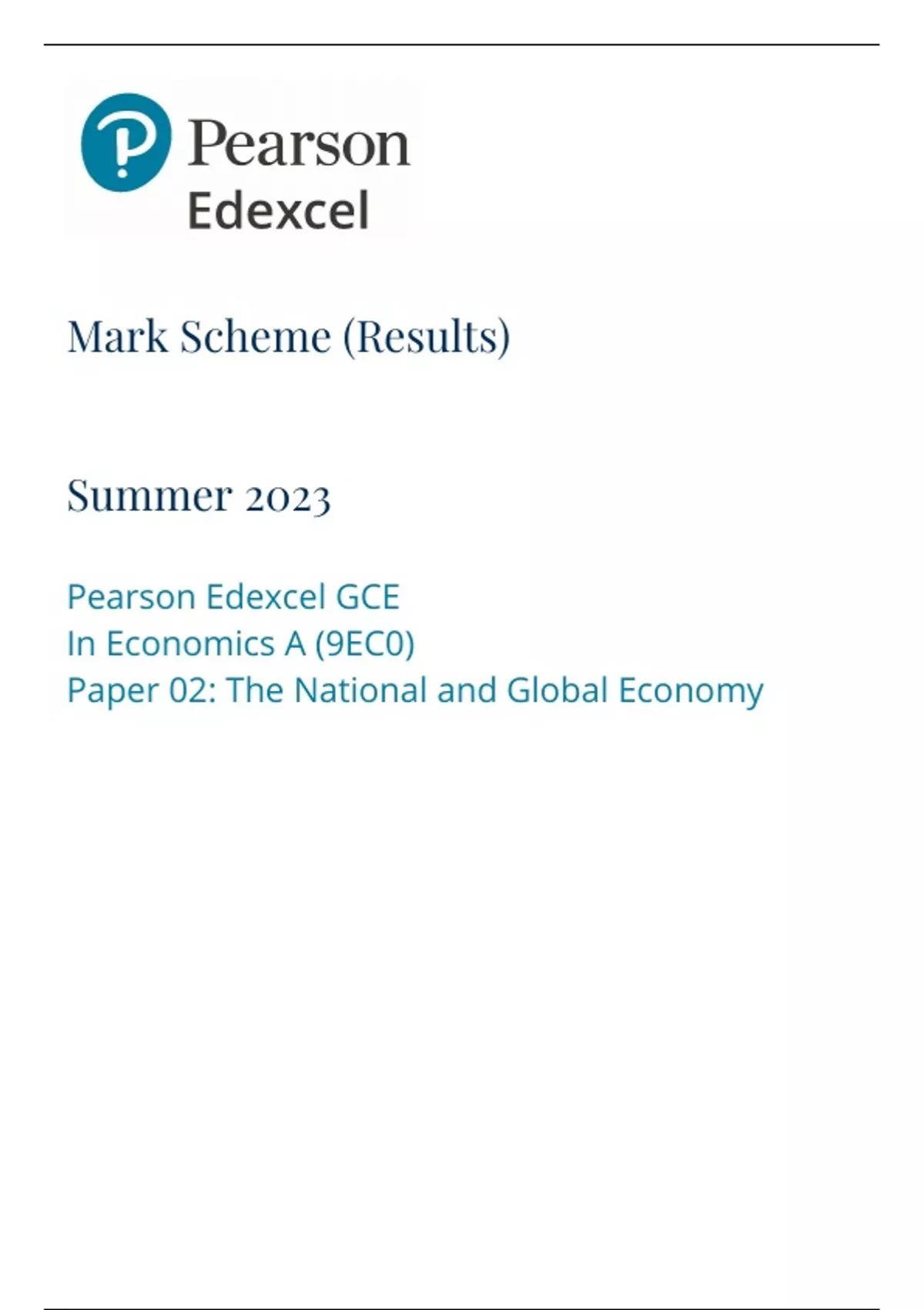 Edexcel A Level Economics (A) Paper 2 Mark Scheme June 2023