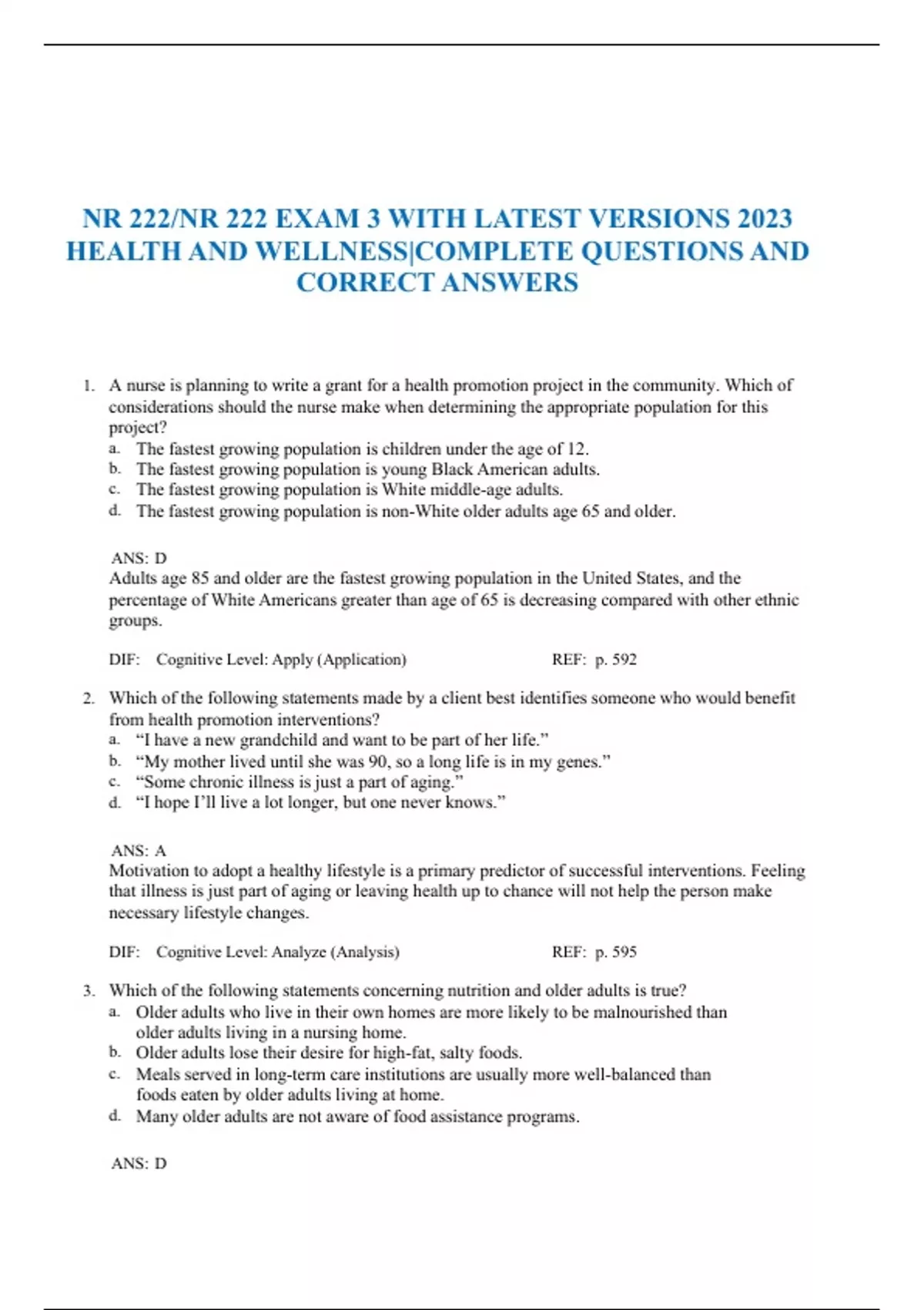 NR 222/NR 222 EXAM 3 WITH LATEST VERSIONS 2023 HEALTH AND WELLNESS|COMPLETE QUESTIONS AND CORRECT ANSWERS