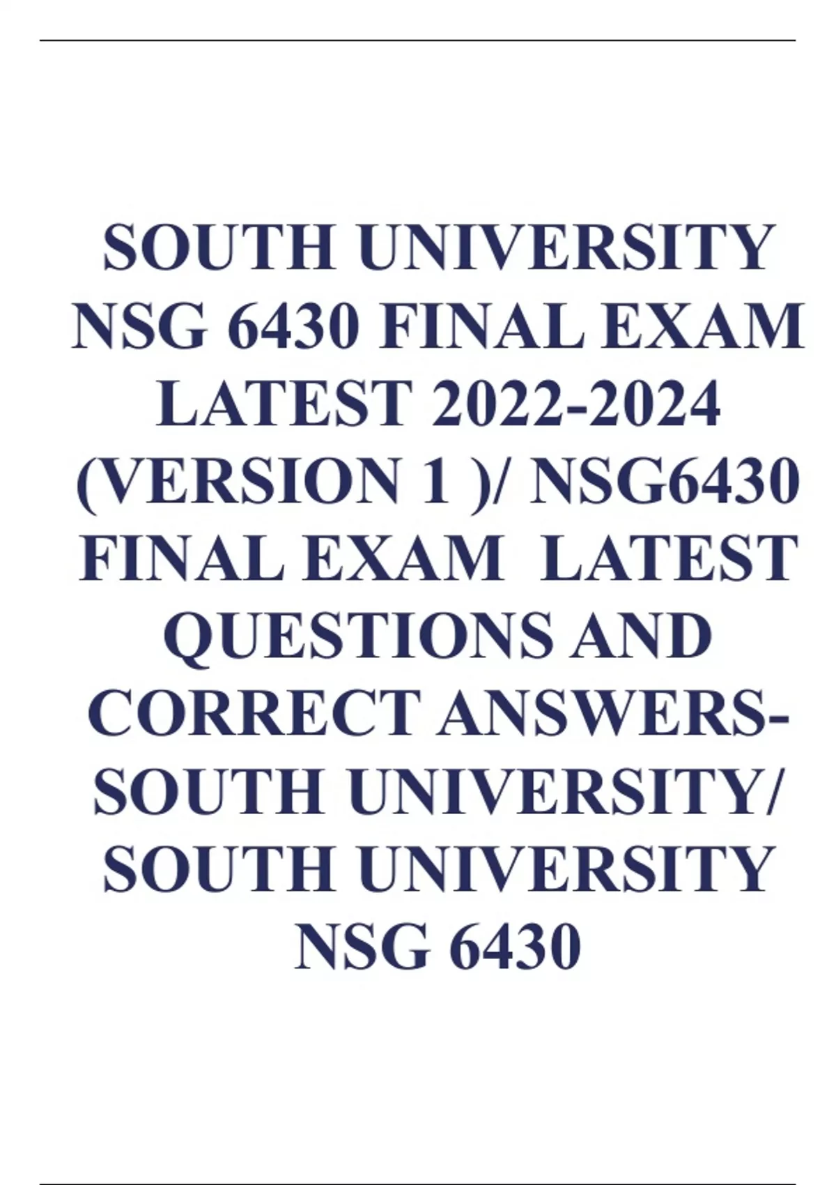 SOUTH UNIVERSITY NSG 6430 FINAL EXAM LATEST (VERSION 1 )/