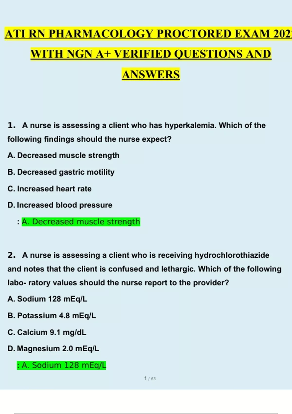 ATI RN PHARMACOLOGY PROCTORED EXAM 2022 WITH NGN A+ VERIFIED QUESTIONS AND ANSWERS