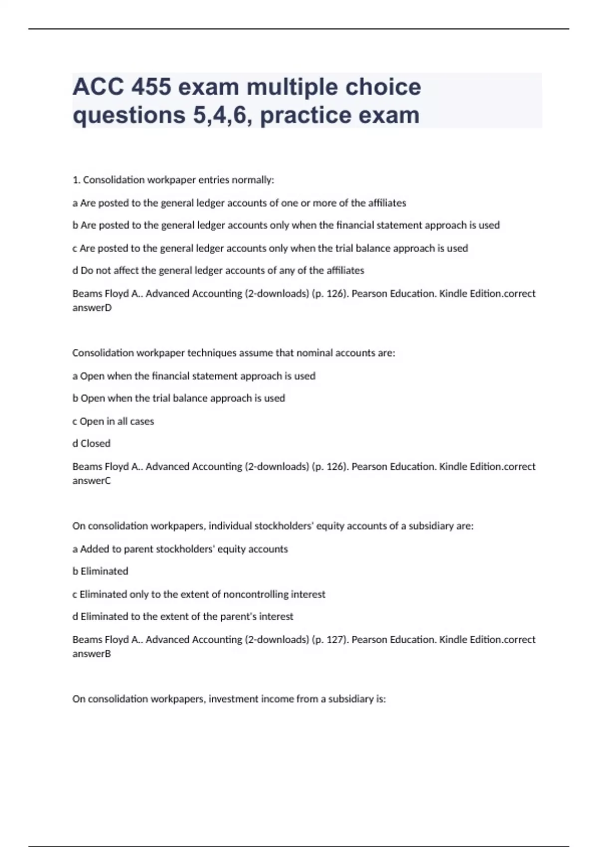 ACC 455 exam multiple choice questions 5,4,6, practice exam questions with answers