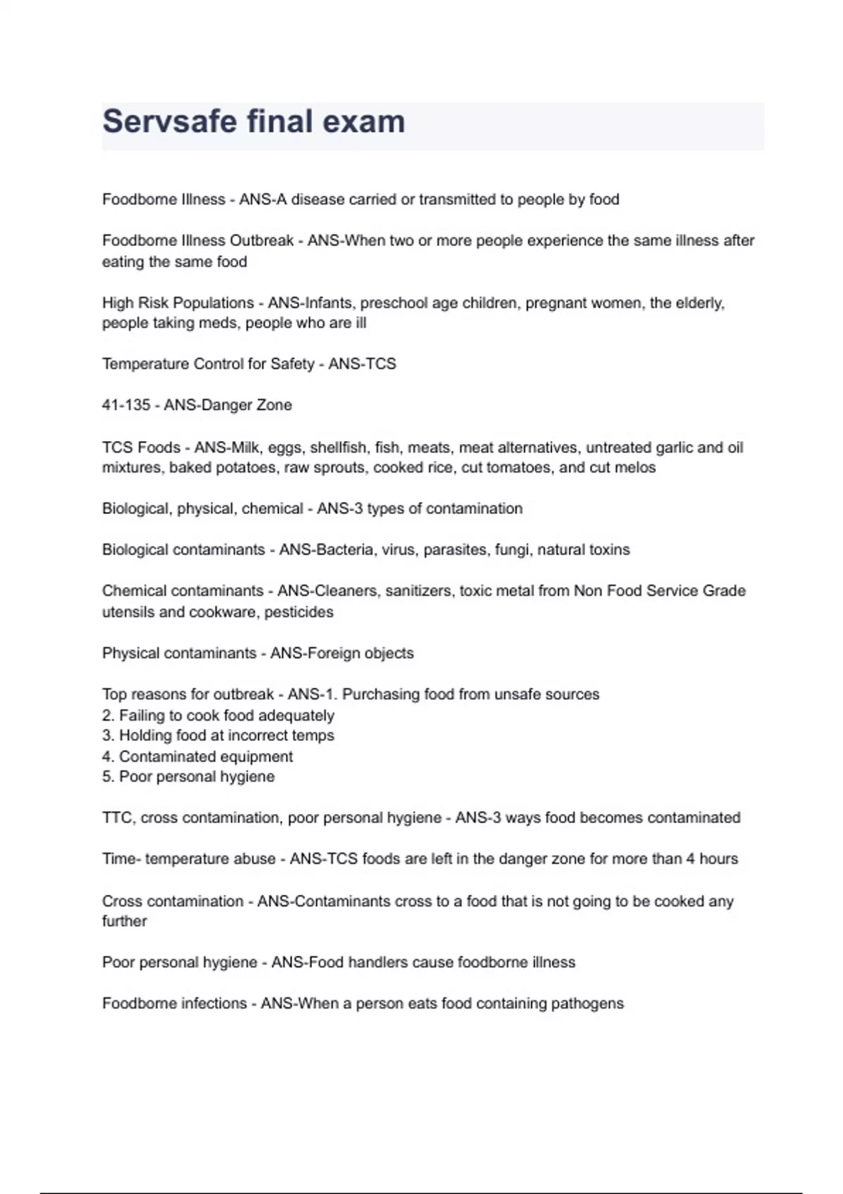 Exam of 8 pages for the course Servsafe f at Servsafe f (Servsafe final exam)
