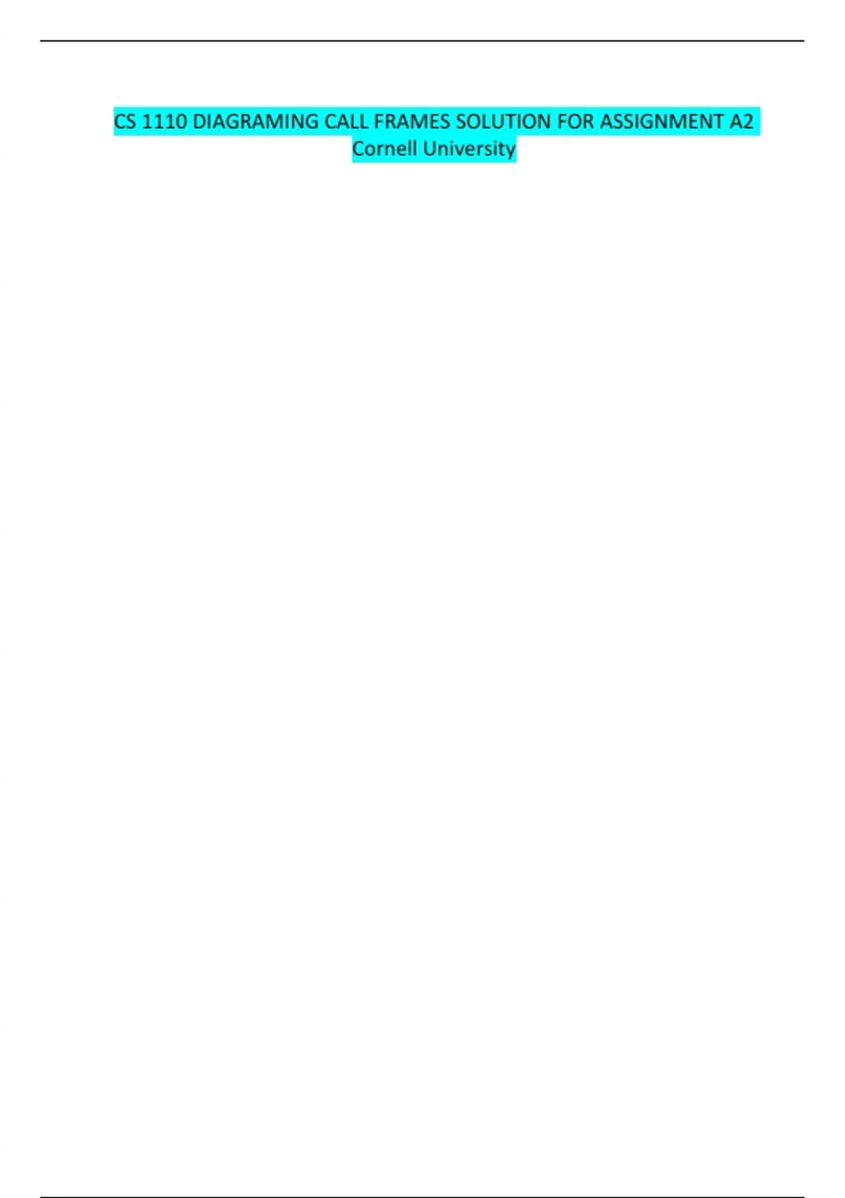 CS 1110 DIAGRAMING CALL FRAMES SOLUTION FOR ASSIGNMENT A2 Cornell University